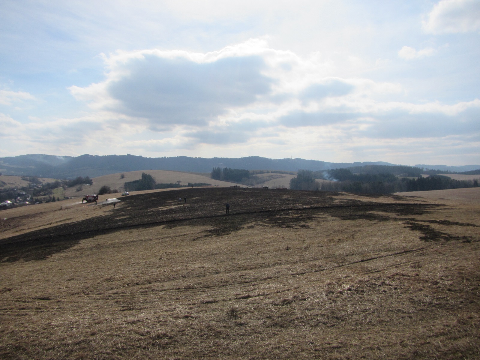 Velký počet výjezdů byl dnes také k požárům lesních a travních porostů. Zde měly nejvíce práce jednotky na Zlínsku a Uherskohradišťsku. Nejčastěji bývá důvodem vzniku takových událostí nedbalost osob při pálení biologického odpadu, nebo zakázané vypalování porostů. Velmi neobvyklou příčinou vzniku požáru byly dnes v Hř. Újezdě dráty elektrického vedení, které se vlivem velmi silného větru rozhoupaly a zkratovaly, a jiskry pak opakovaně zapalovaly suchý porost.