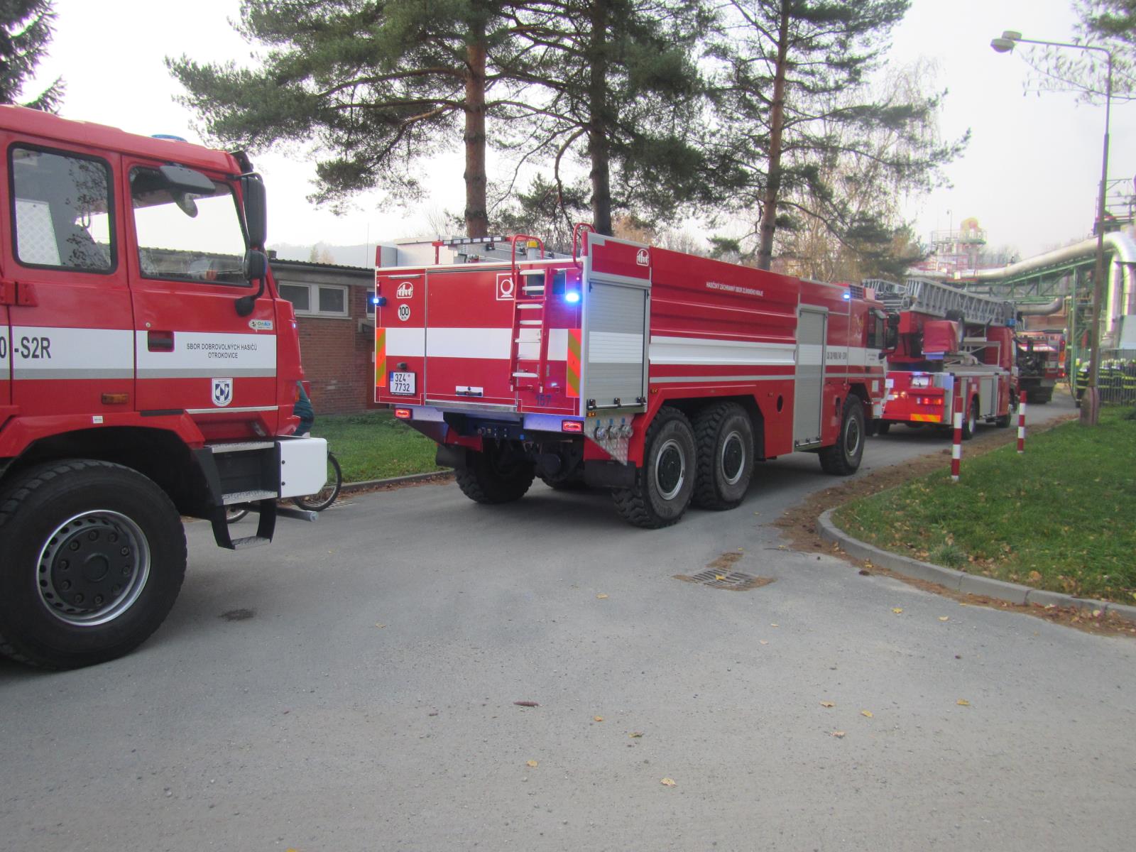 Vpátek 9.11.2018 , čtyři jednotky hasičů s deseti zásahovými vozidly byly vyslány k hlášenému požáru v prostorách firmy na třídě Tomáše Bati v Otrokovicích.