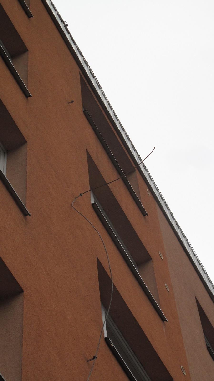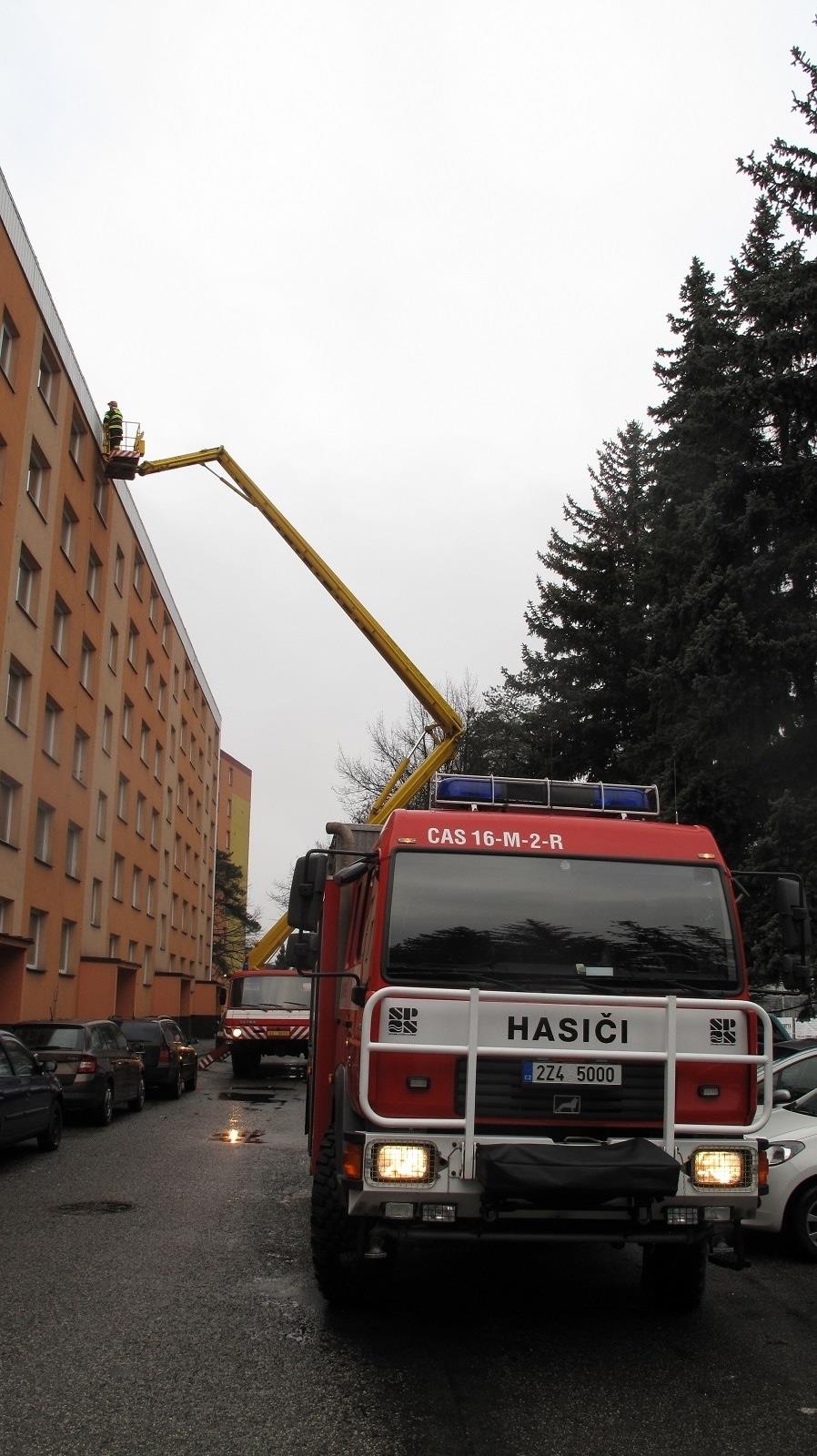 V sobotu 29. 12. 2018 hasiči města Rožnov pod Radhoštěm dopoledne prováděli práce na zajištění poškozeného svodu hromosvodu bytového domu.