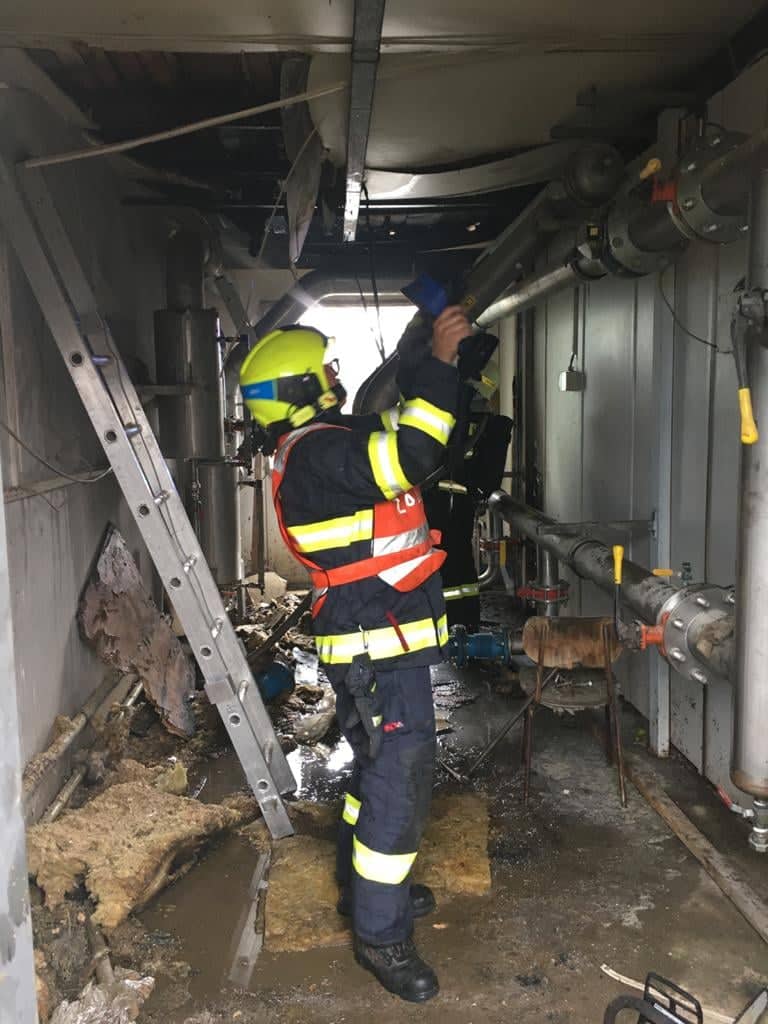 Další jednotka po celou dobu likvidace požáru ochlazovala objemnou nádrž metanu, která se nacházela v těsné blízkosti požárem zasaženého objektu.