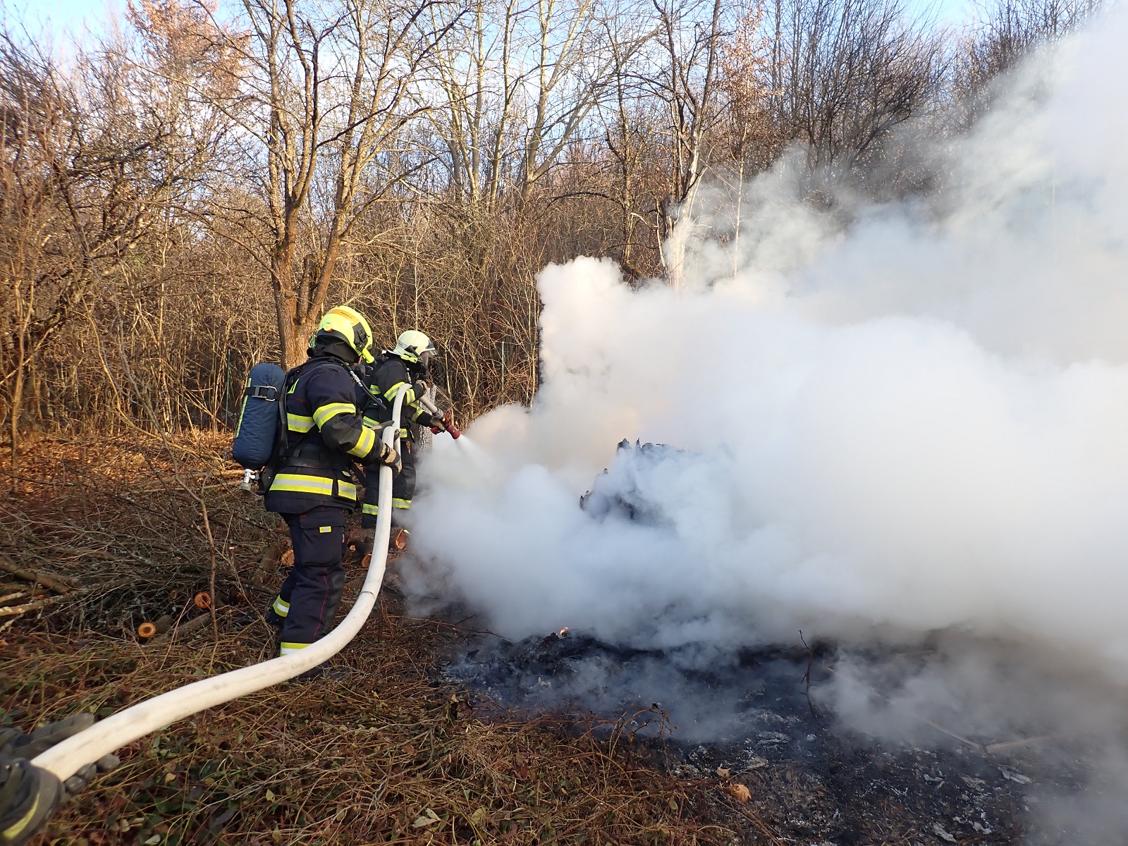 K hořící chatě nevedla žádná komunikace, a proto jsme museli vytvořit dálkové vedení vody v délce asi 200 metrů.