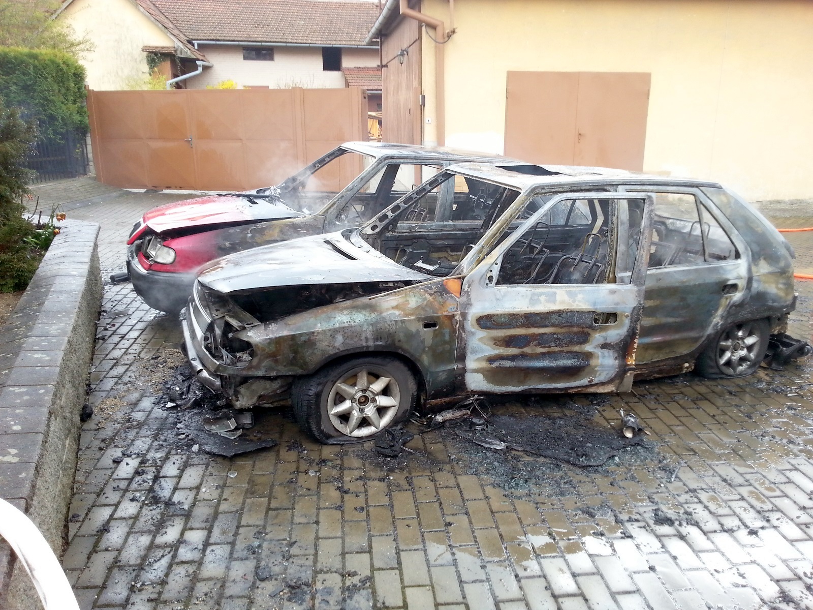 Požár dvou osobních automobilů ve Slavičíně-Nevšové.