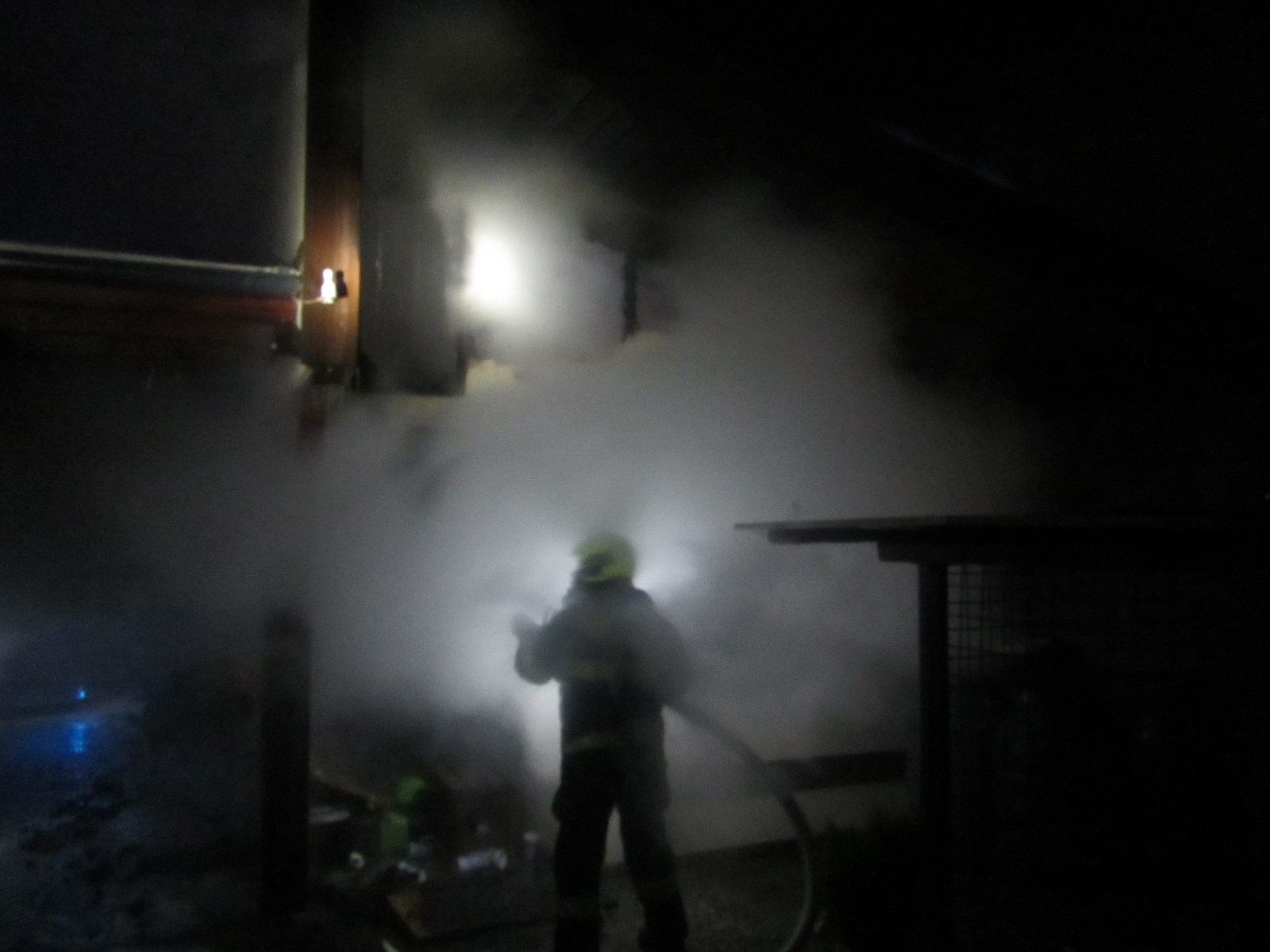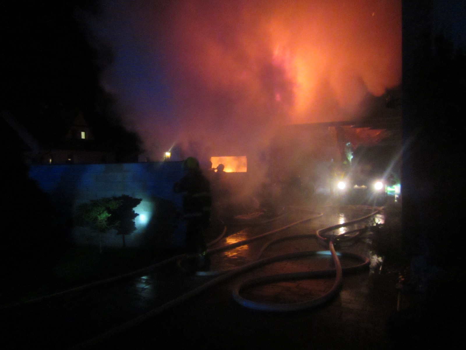 Průzkumem bylo zjištěno, že hoří garáž a pergola. Pergola spojovala garáž a rodinný dům. Pod pergolou stál osobní automobil, který jsme odtlačili mimo hořící objekt. Dále jsme vypnuli přívod elektrického proudu. K uhašení požáru byly nasazeny tři útočné proudy vody C. Zasahovali jsme v dýchacích přístrojích.