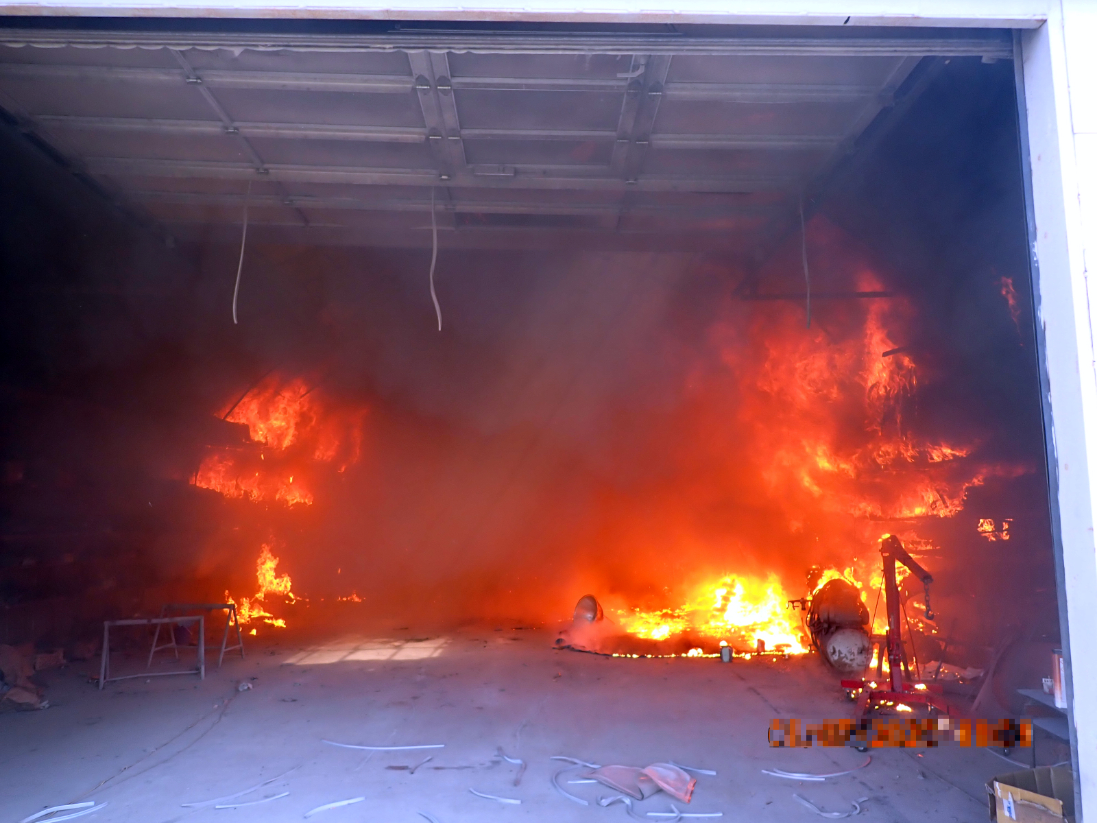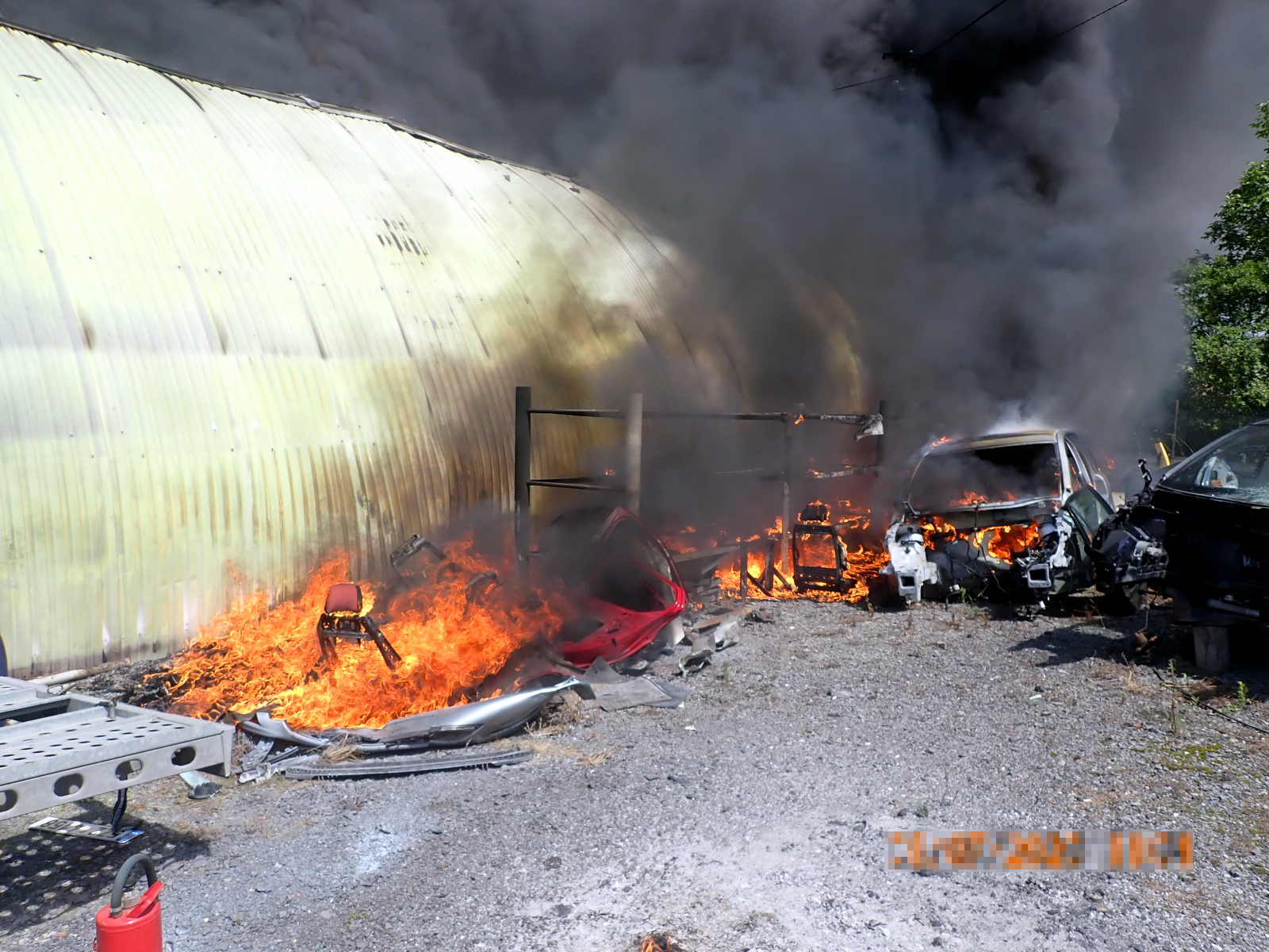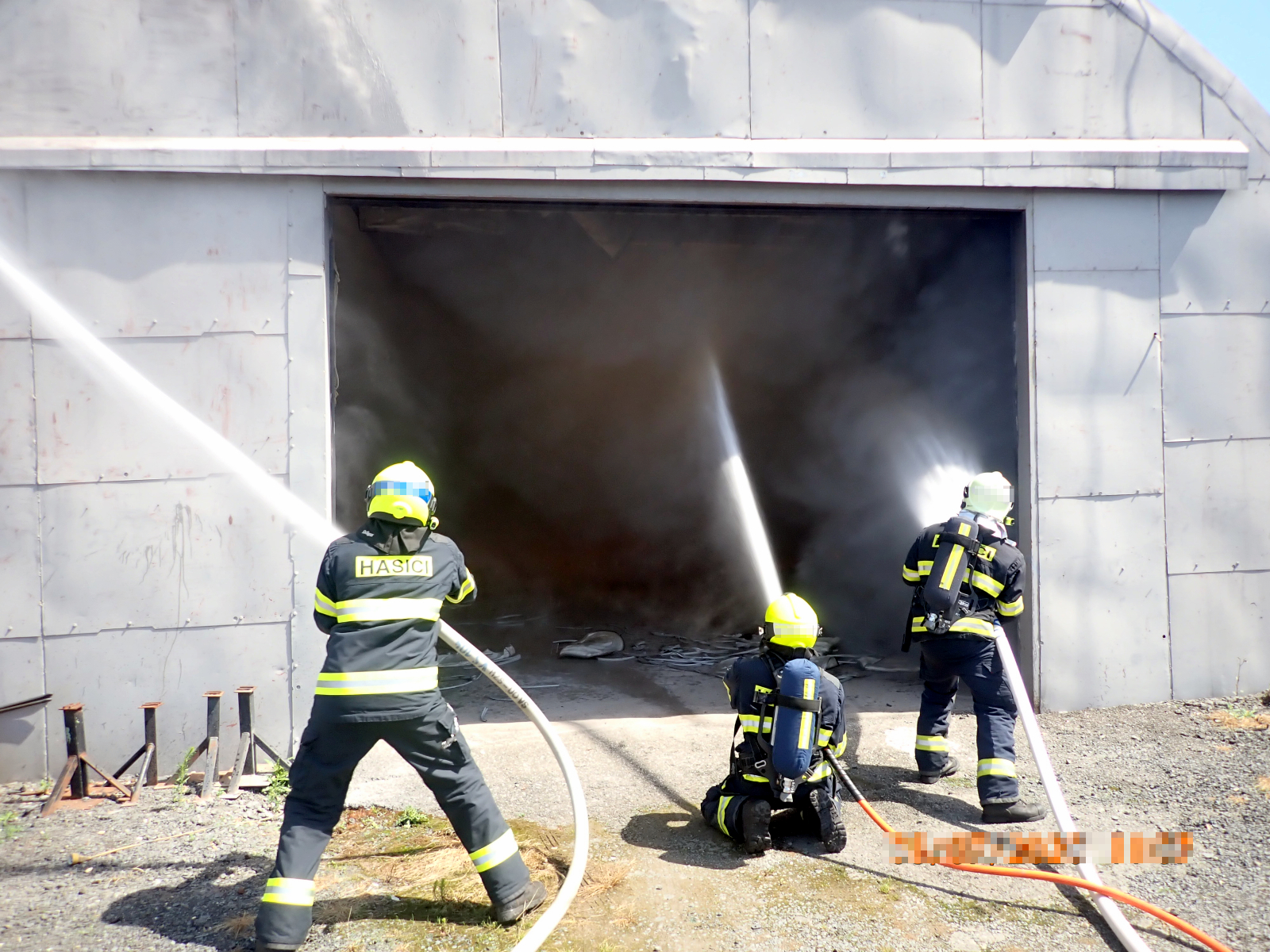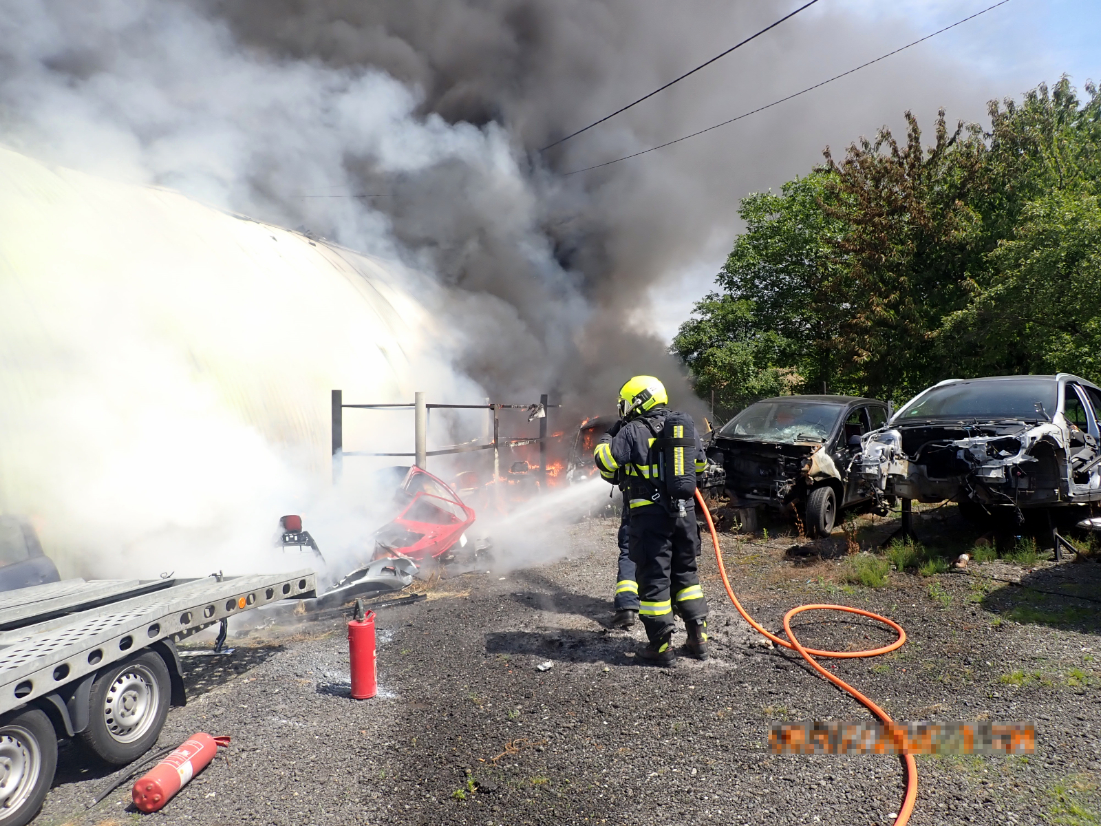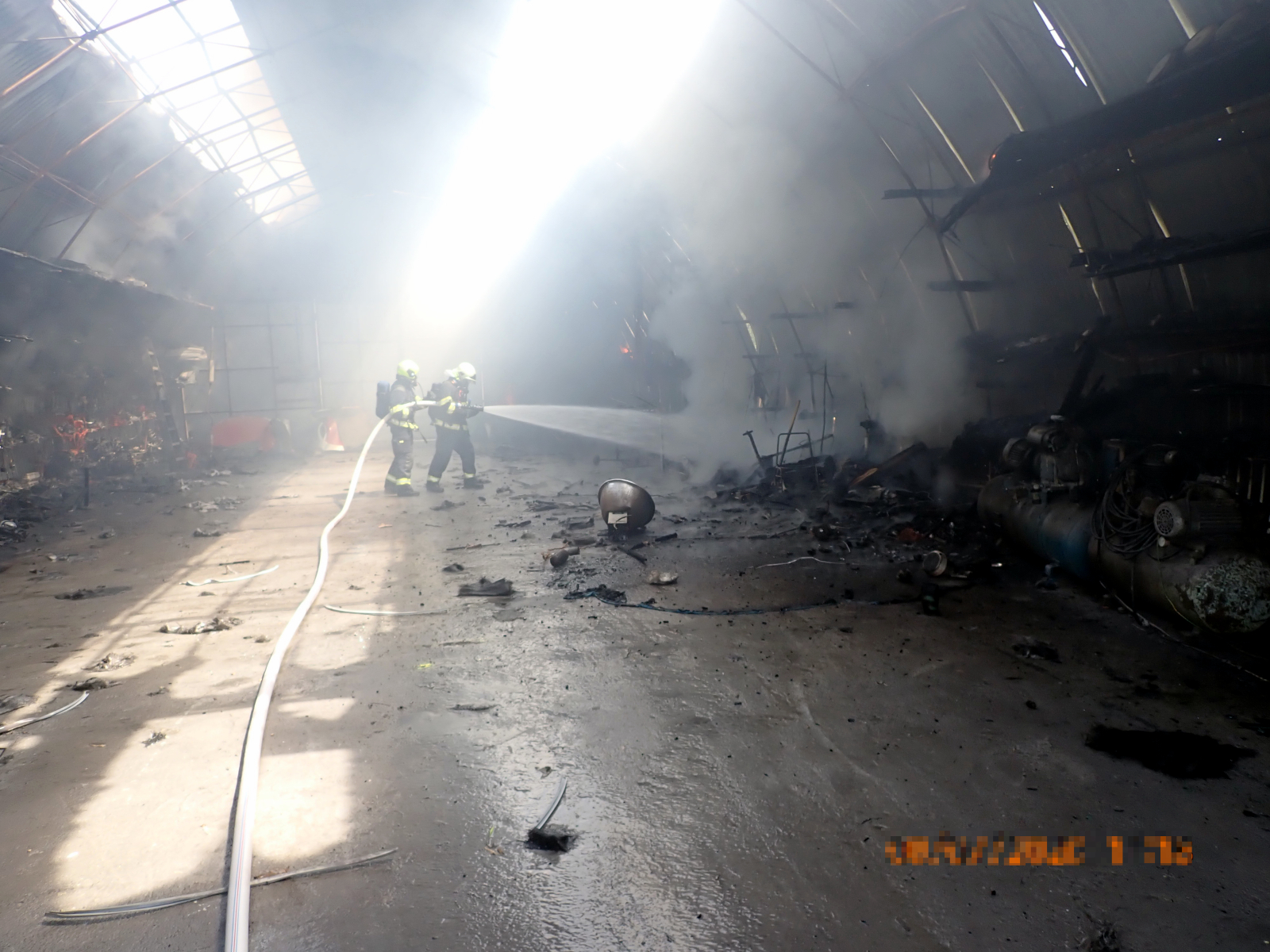 Ihned po příjezdu bylo velitelem potvrzeno, že požár zasáhl uskladněné náhradní díly na automobily v hale a jejím blízkém okolí. Majitel se snažil před příjezdem o uhašení pomocí několika práškových hasicích přístrojů, avšak neúspěšně. Ihned byl proto nasazen jeden vysokotlaký proud a tři útočné proudy C, a hasiči v dýchací technice požár velmi rychle do několika minut lokalizovali. Celkovou likvidaci požáru velitel ohlásil po dohašení všech ohnisek ve 12:07 hodin. Majiteli pak byla nařízena dohlídka na požářišti do večerních hodin.