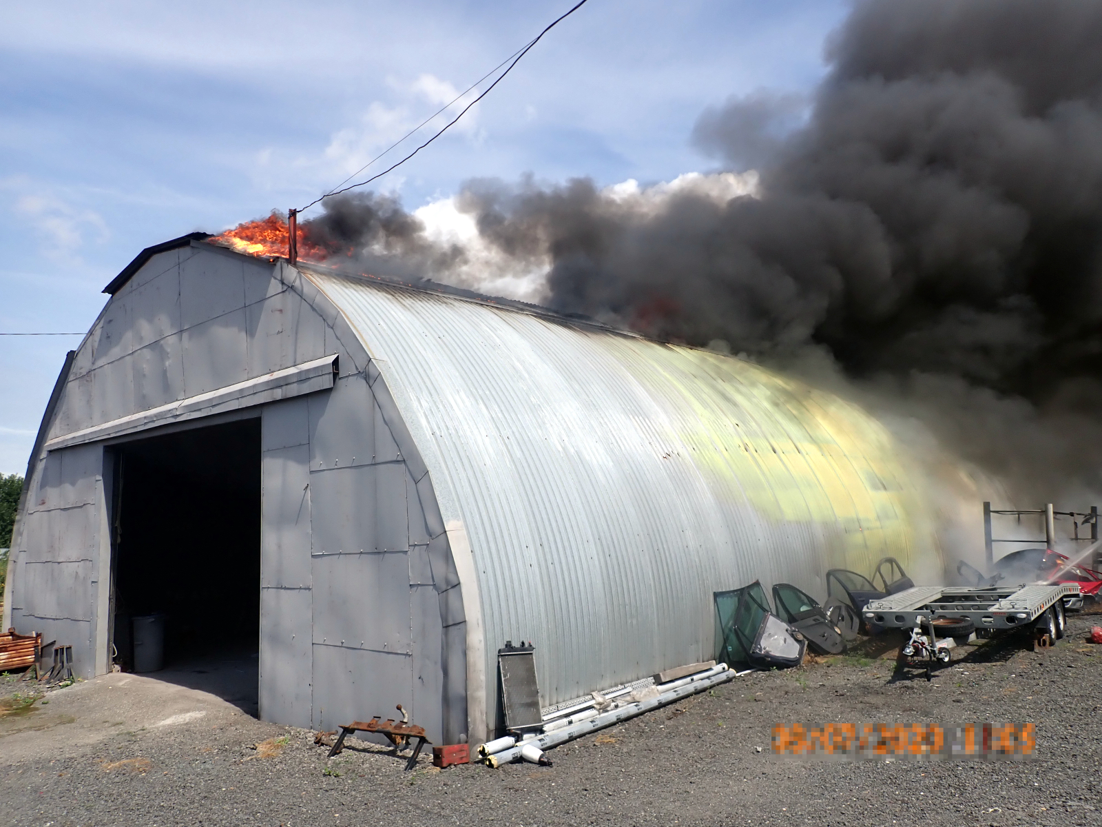 (8. 7. 2020) Informaci o požáru plechové haly v obci Krhová na Vsetínsku přijali hasiči dnes krátce před jedenáctou hodinou dopoledne. Podle oznamovatele se jednalo o sklad s materiálem o rozloze asi 50x10 metrů. Operační důstojník proto na místo vyslal postupně šest jednotek profesionálních i dobrovolných hasičů. K události vyjel také velící důstojník směny ze Zlína.