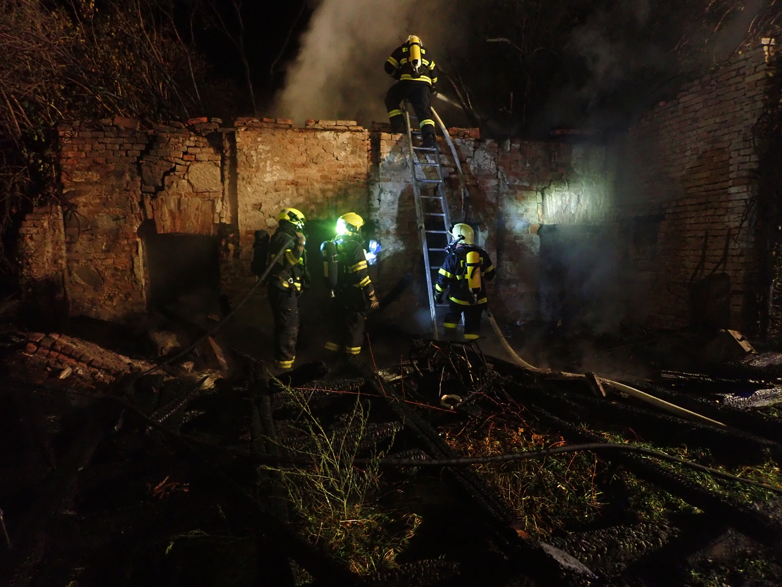 (18. 10. 2022) Dvě jednotky zasahovaly dnes v noci u požáru hospodářského objektu na ulici Nádražní v Tlumačově.