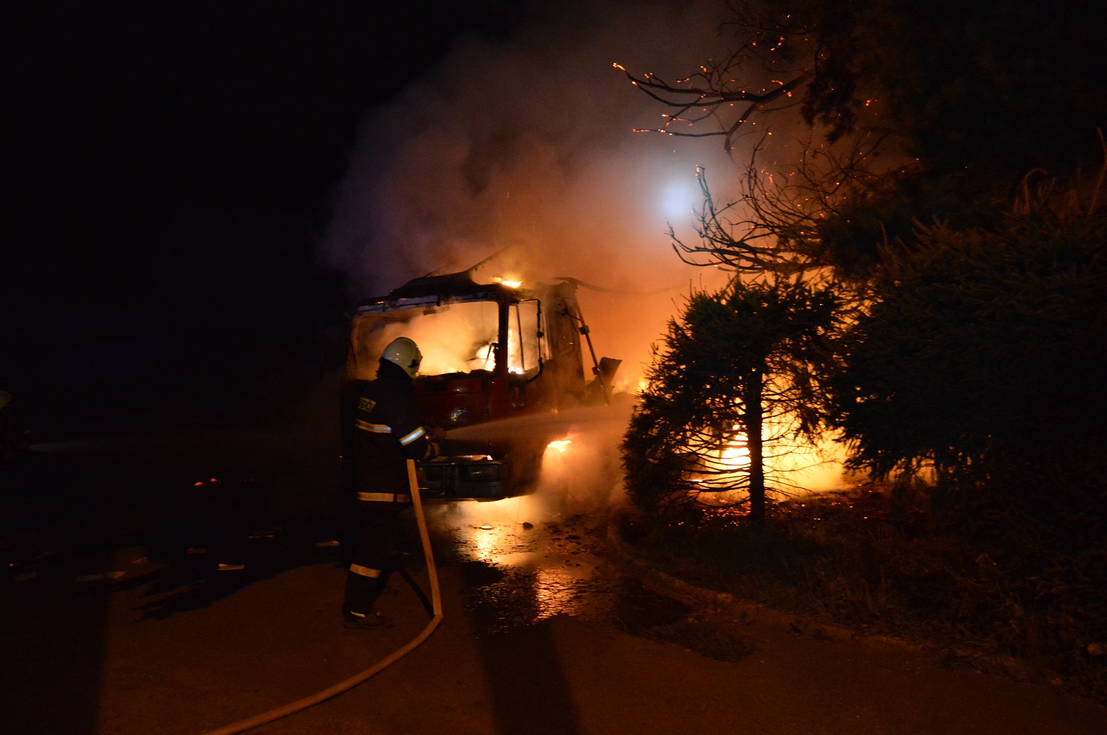 Na místě požáru byli jako první hasiči z Velkých Karlovic. V době jejich příjezdu už bylo nákladní vozidlo celé v plamenech. Od hořícího vozu chytla borovice a živý plot v délce asi sedmi metrů. Hasiči postupně nasadili v boji s plameny dva útočné proudy C a jeden vysokotlaký proud vody. Během 30 minut měli hasiči požár pod kontrolou.