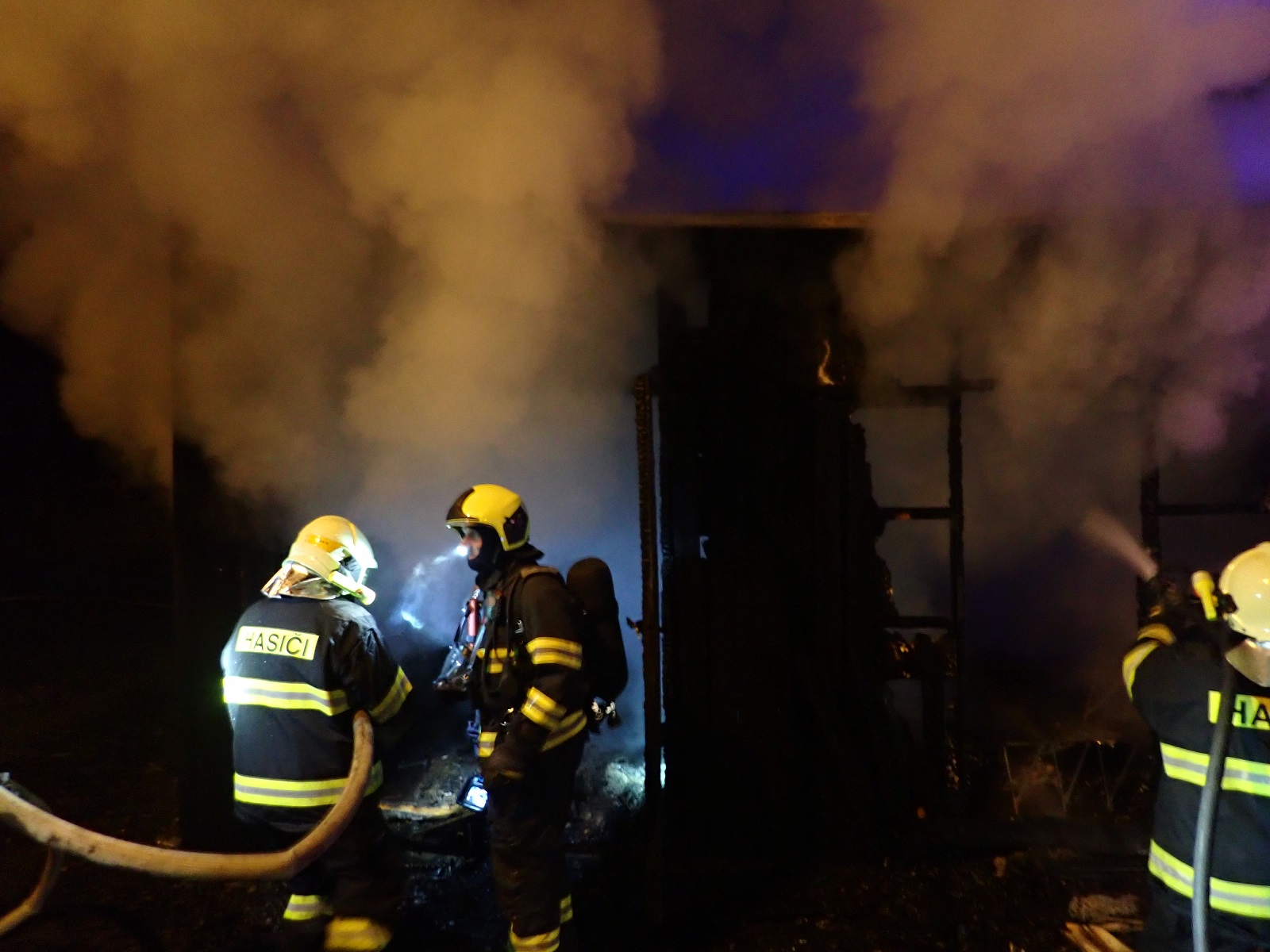 Velitel zásahu si vyžádal příjezd Policie České republiky a vyšetřovatele hasičů.