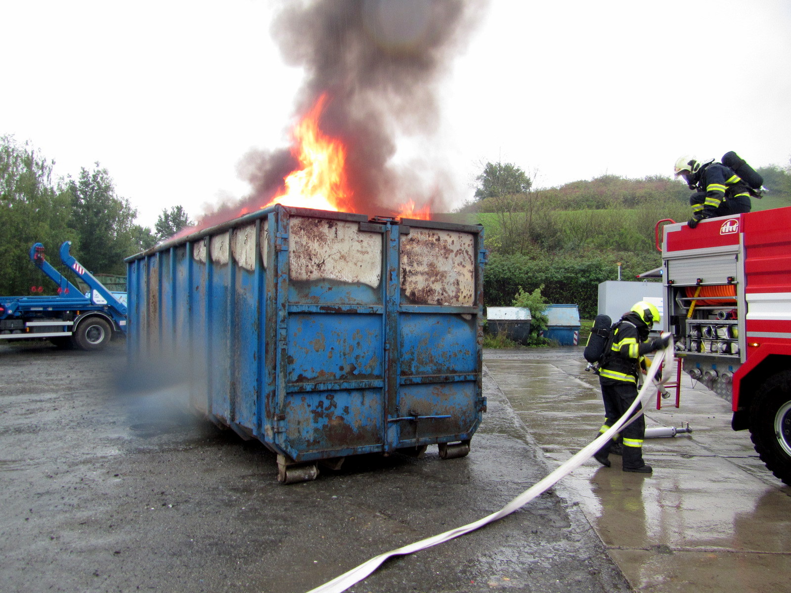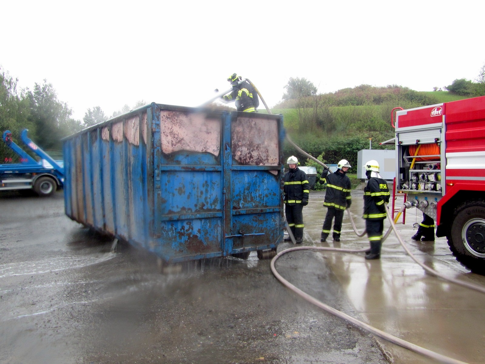 V neděli 17. 9. 2017, v 11:57 hodin přijali hasiči informaci o požáru kontejneru na skládce v Otrokovicích - Kvítkovicích. Operační důstojník na místo okamžitě vyslal jednotku profesionálních hasičů ze stanice Otrokovice a posilové jednotky dobrovolných hasičů z Kvítkovic a Otrokovic s dalšími cisternami.