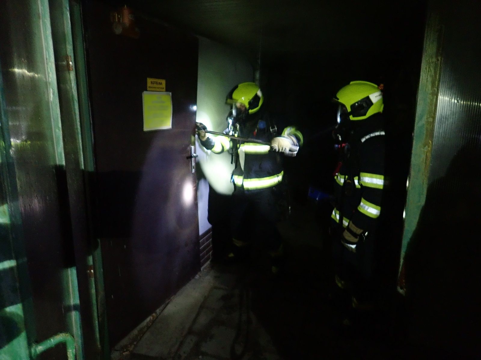 Na místo hlášeného požáru se dostavily všechny základní složky integrovaného záchranného systému. Průzkumem v dýchacích přístrojích bylo zjištěno, že hoří štěpka v kotelně. Abychom se do kotelny dostali, museli jsme vypáčit dveře. Prostor v kotelně byl silně zadýmený. V kotelně se nenalézala žádná osoba. K odvětrání prostoru jsme použili přetlakový ventilátor. Dále jsme uzavřeli přívod plynu do kotelny a vypnuli hlavní jistič elektro. K uhašení požáru jsme nasadili dva proudy vody. Následně jsme provedli kontrolu v půdním prostoru a měřili teploty stavebních konstrukcí termokamerou.