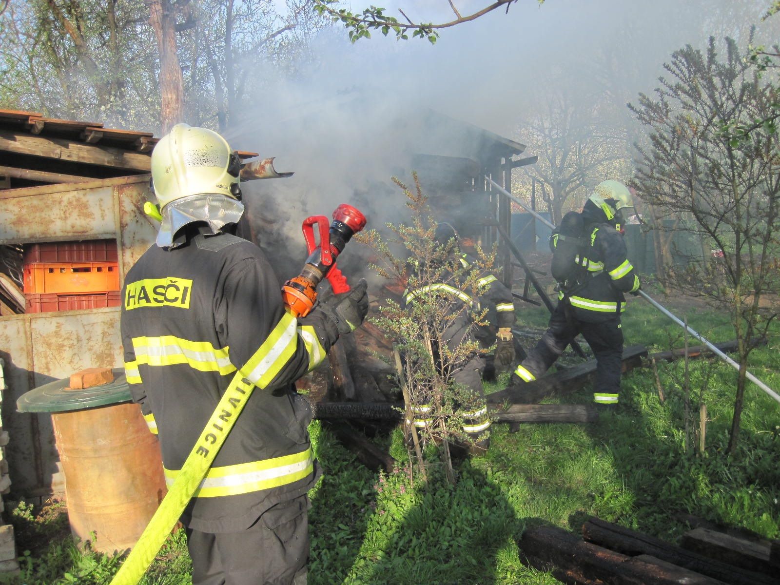Dvě jednotky hasičů zasahovaly 17.4. 2018 v podvečer u požáru kůlny s dřevem v Nivnici na Uherskohradišťsku.