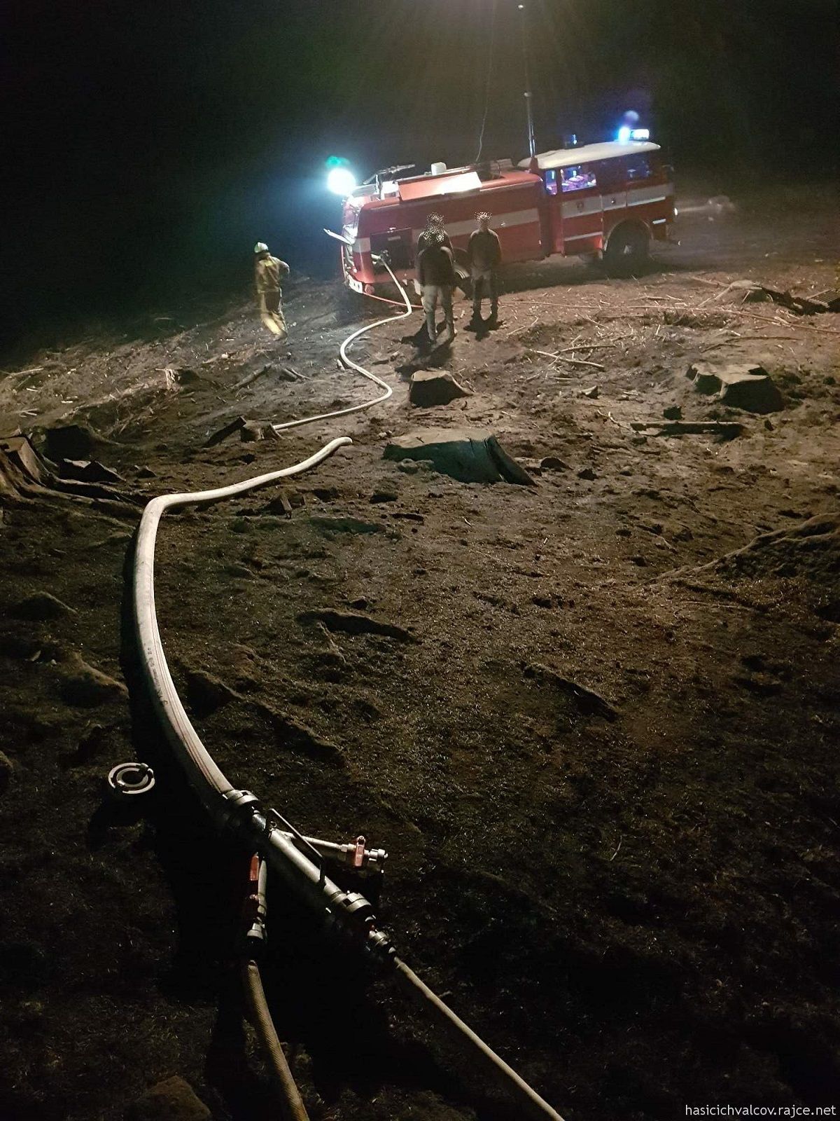 I přes nepřístupný terén byla u požáru jako první jednotka dobrovolných hasičů z Rajnochovic. Průzkumem zjistili 7 ohnisek. Od těchto ohnisek se díky silnému větru plocha hoření rozšířila až na 100 metrů čtverečních. K místu požáru byl špatný příjezd. Hasiči proto na místo požáru šli i pěšky. Než byly vytvořeny čtyři útočné proudy vody, byla využita k hašení voda z kanystrů a lopaty. Hasební práce byly skončeny 20.4.2018 v 1:51 hodin a místo bylo předáno jednotce dobrovolných hasičů z Loukova.