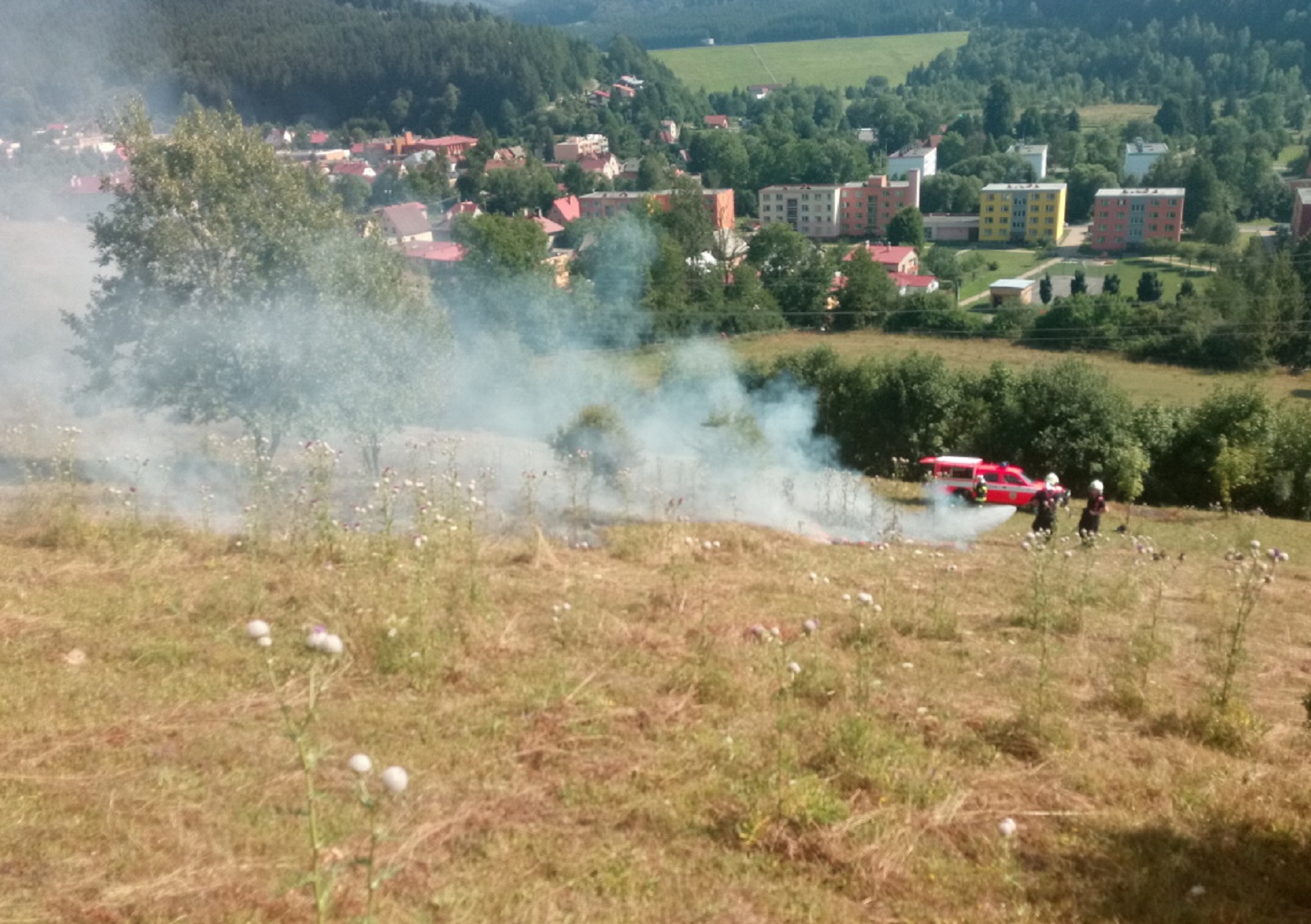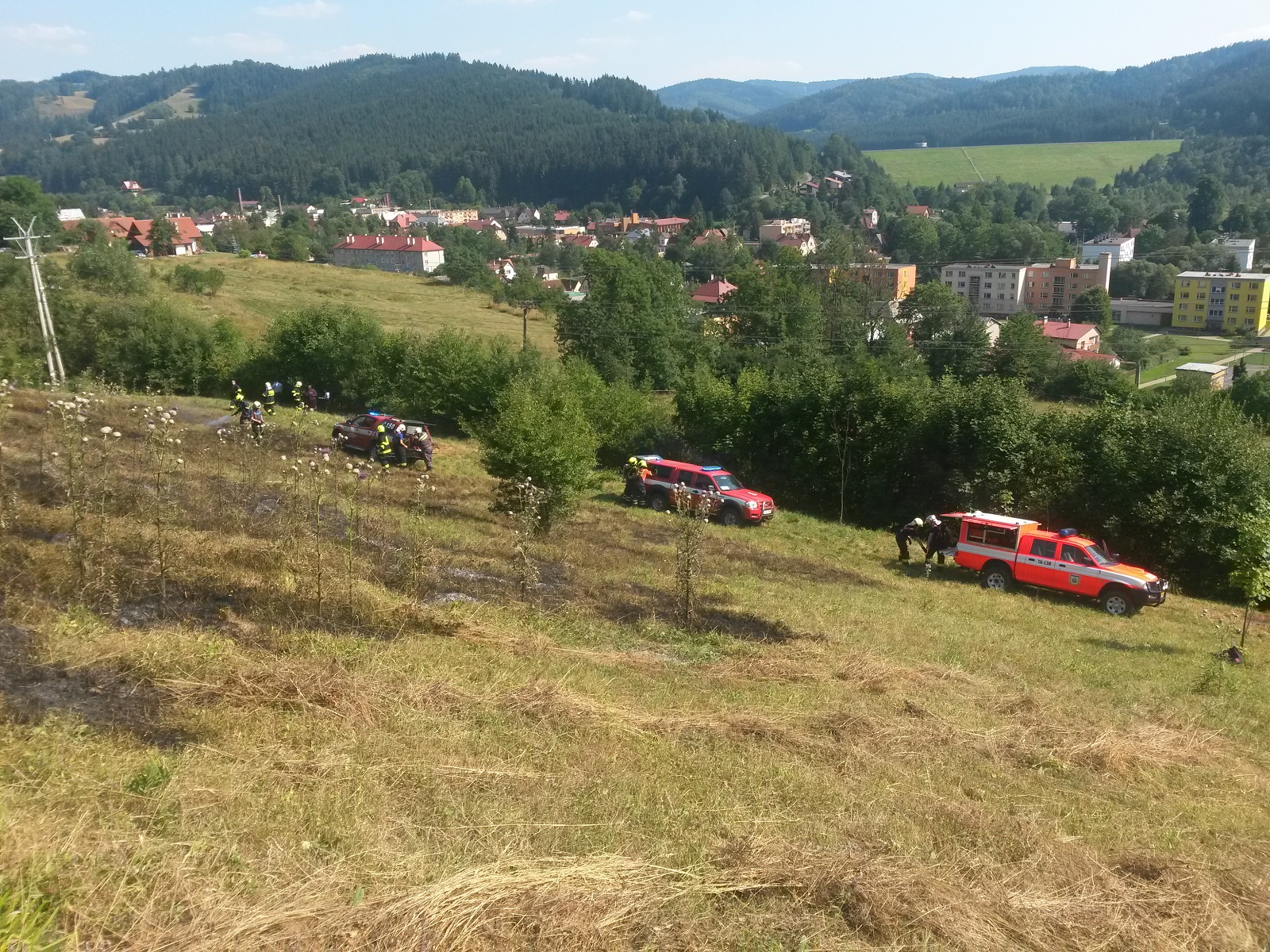 1. 8. 2017, v odpoledních hodinách zasahovaly čtyři jednotky hasičů u požáru louky v Karolínce v okresu Vsetín.
