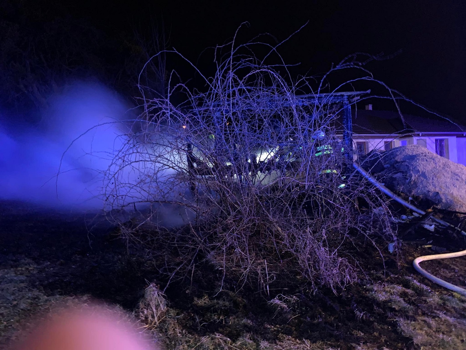 Požár malého skladu stavebního materiálu u rodinného domu