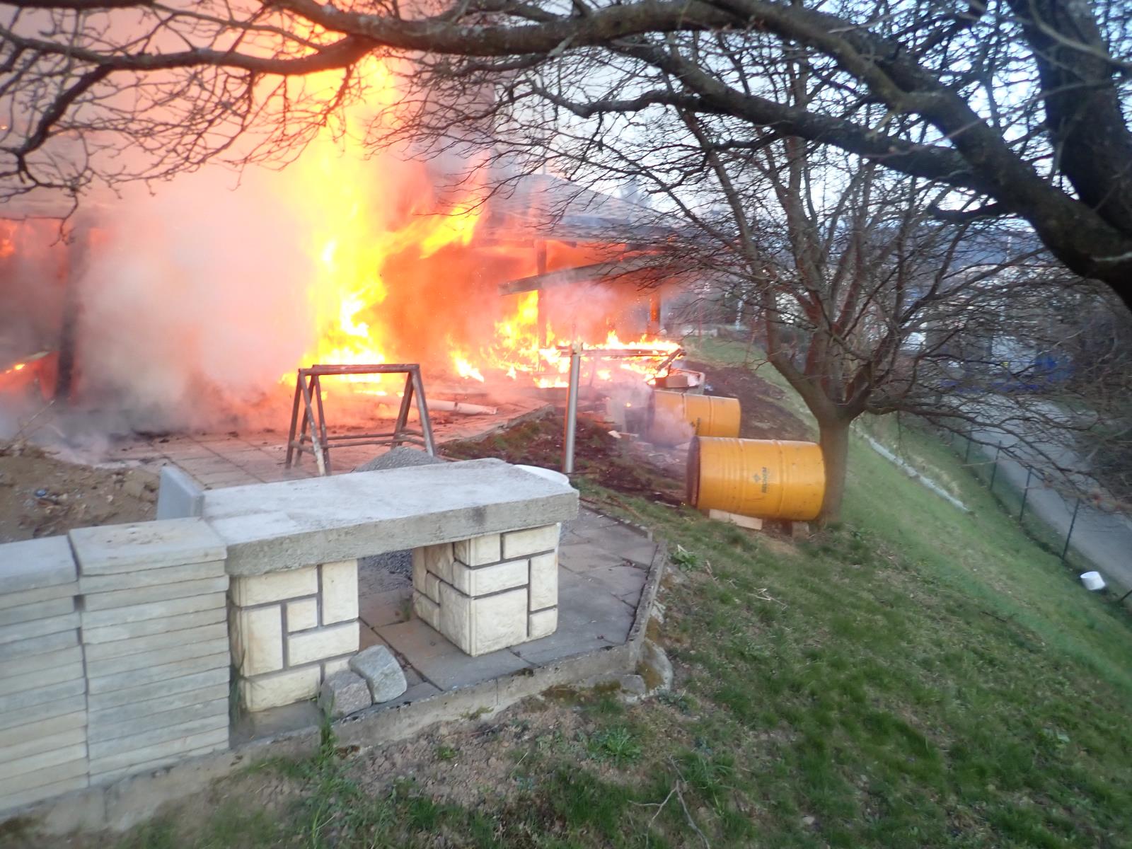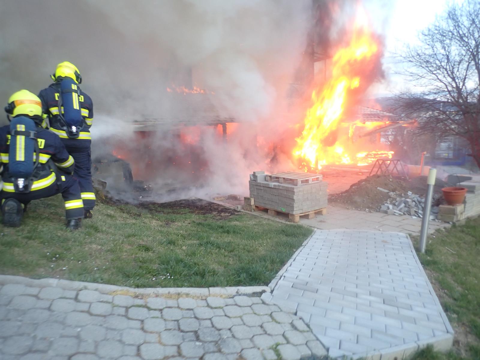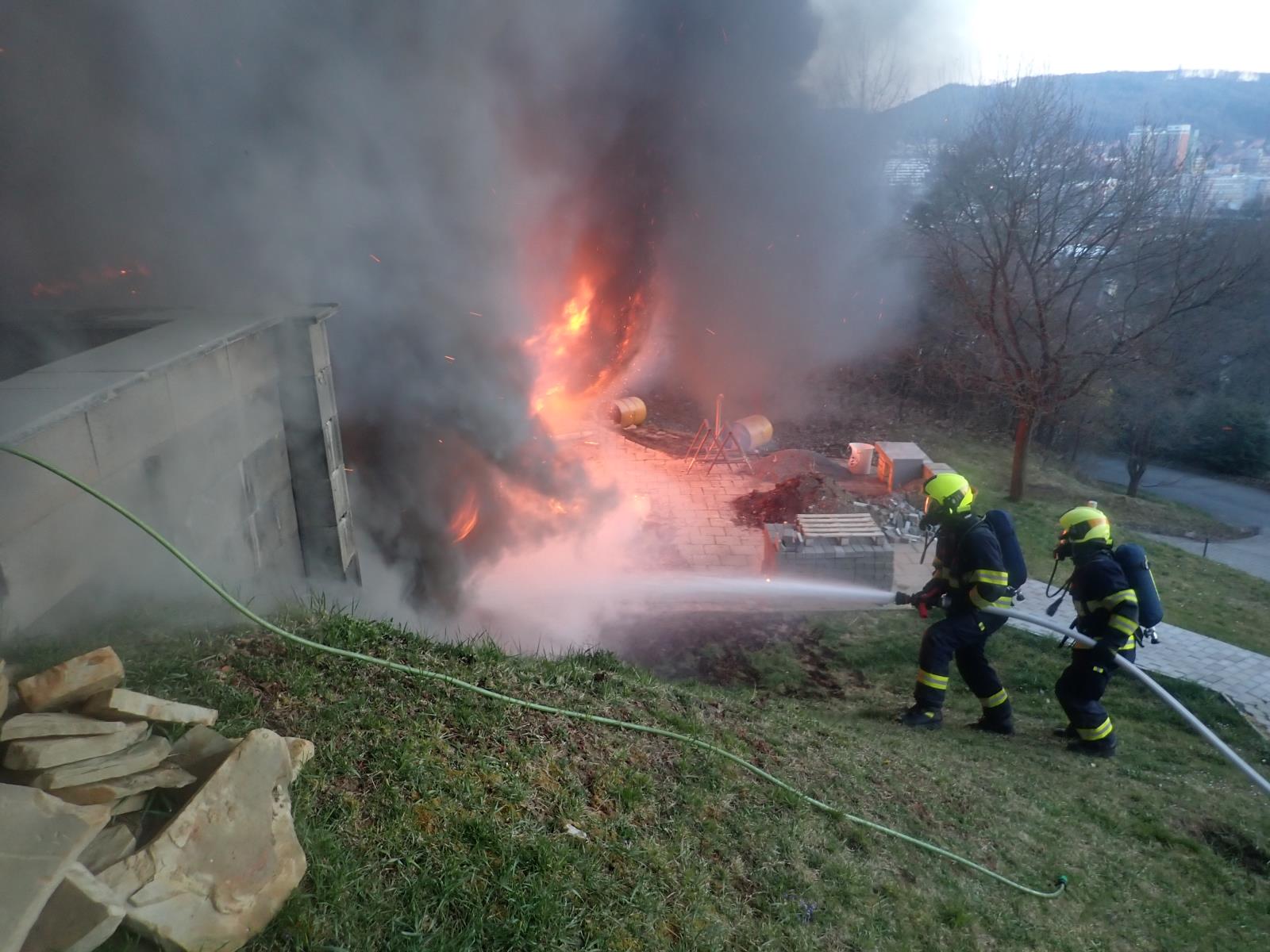Hustý černý kouř vyděsil okolo sedmé hodiny večerní obyvatele největšího zlínského sídliště Jižní Svahy. Do ulice Nad Vývozem ihned vyjelo pět jednotek hasičů, a to ze stanice Zlín a z obcí Fryšták, Slušovice, Štípa a Zlín. Požár bylo vidět i z města, proto si velitel jednotky profesionálních hasičů po cestě k zásahu na místo povolal další cisterny s vodou a vyhlásil druhý stupeň požárního poplachu.