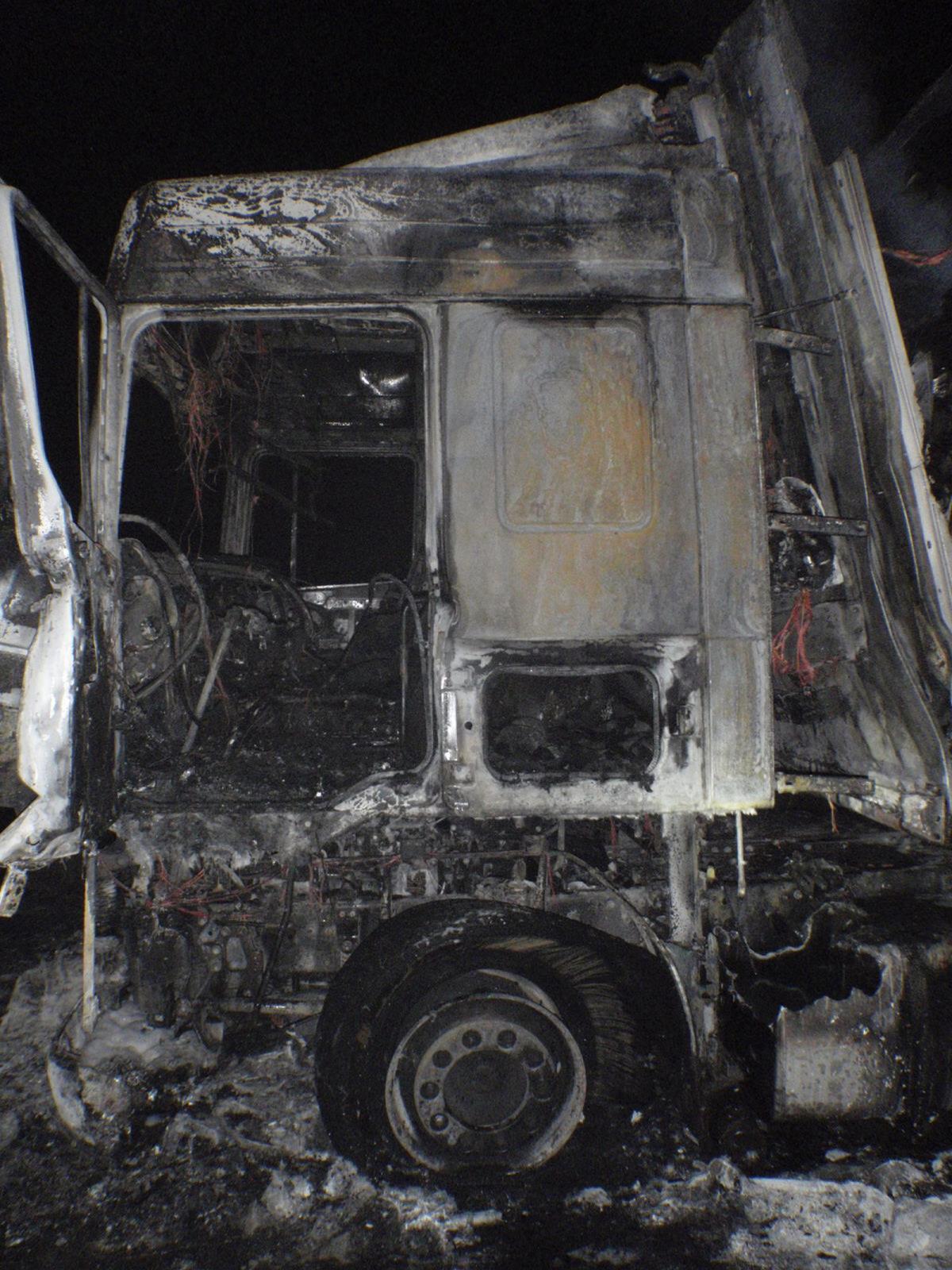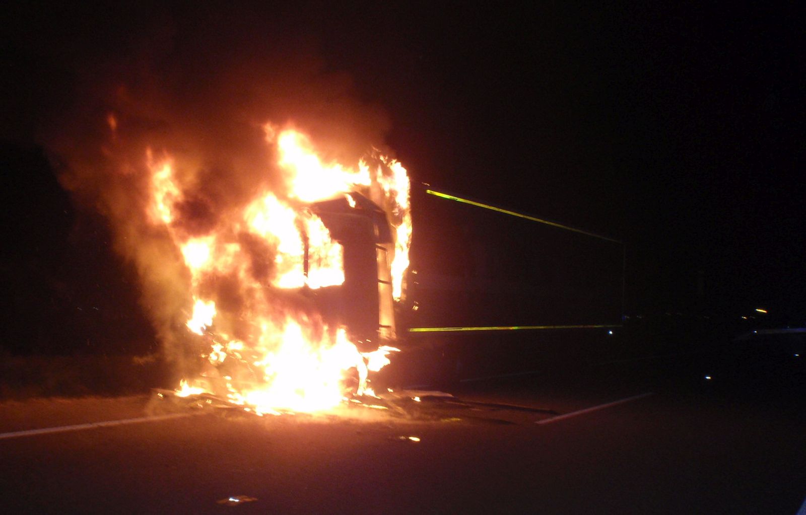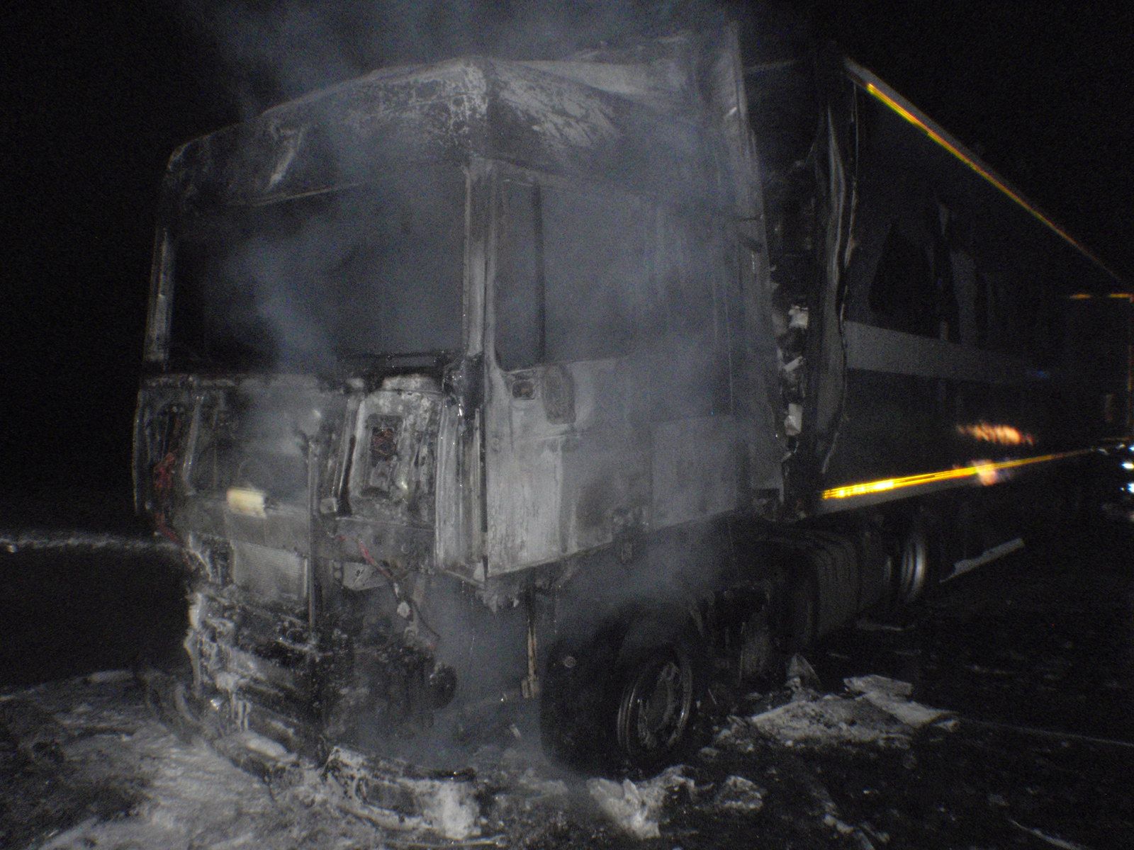 Požár se z pneumatiky rychle rozšířil na motorový prostor a kabinu tahače, které zcela pohltil. Plameny se následně začaly šířit i na přední část návěsu. Jeho zničení zabránili hasiči svým zásahem. Při požáru došlo také k poškození nádrže tahače a úniku nafty na komunikaci.