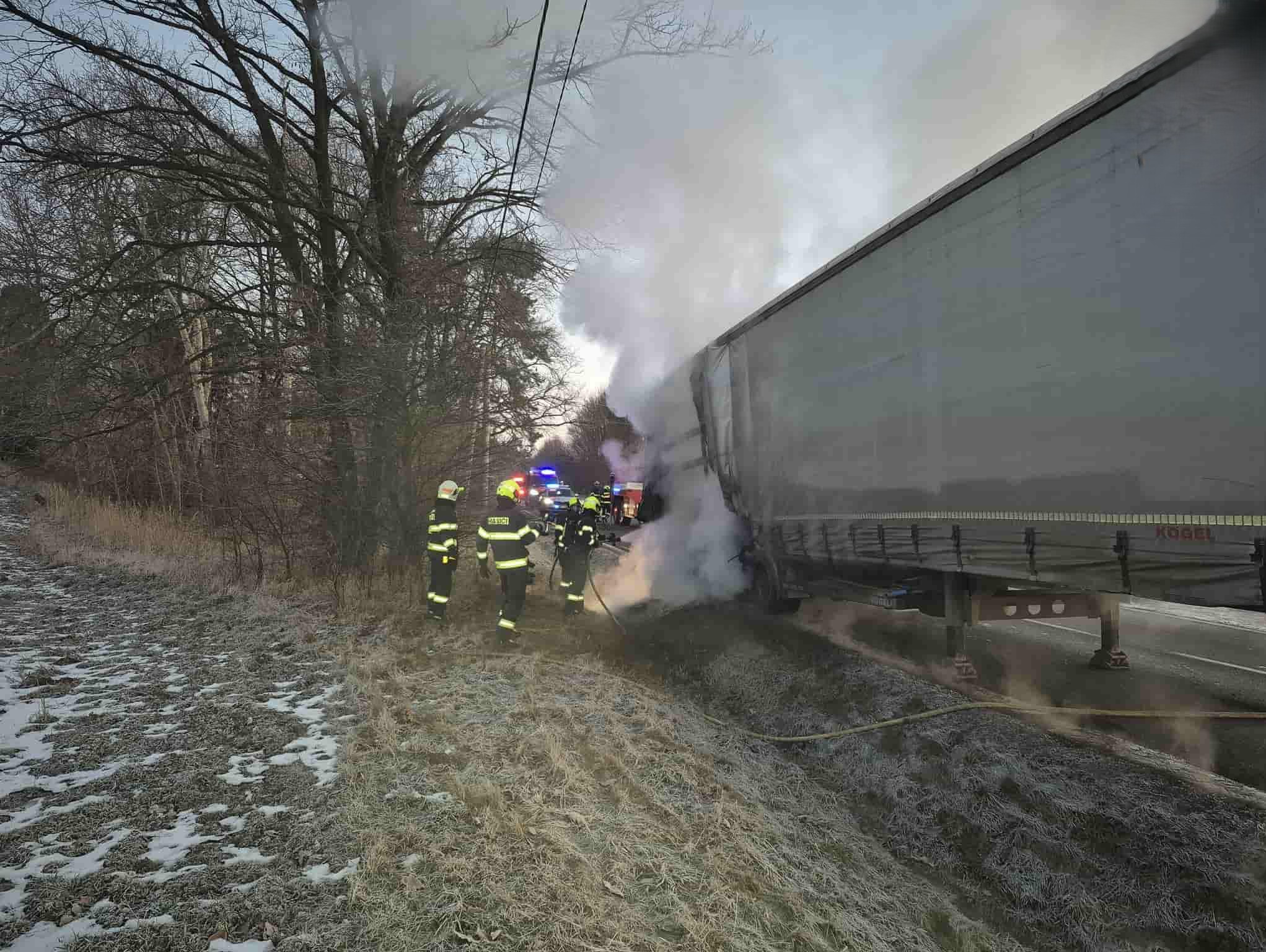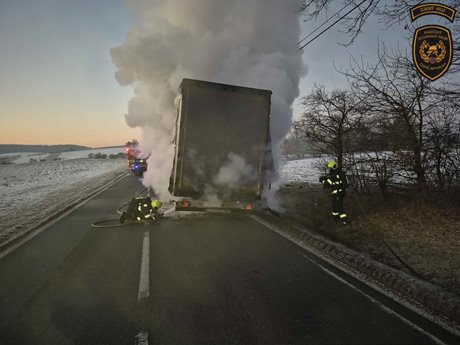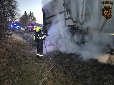 Požár nákladního vozidla ohrozil provoz na silnici