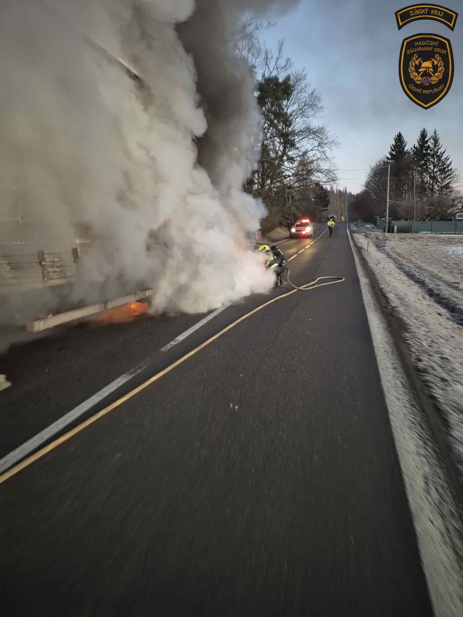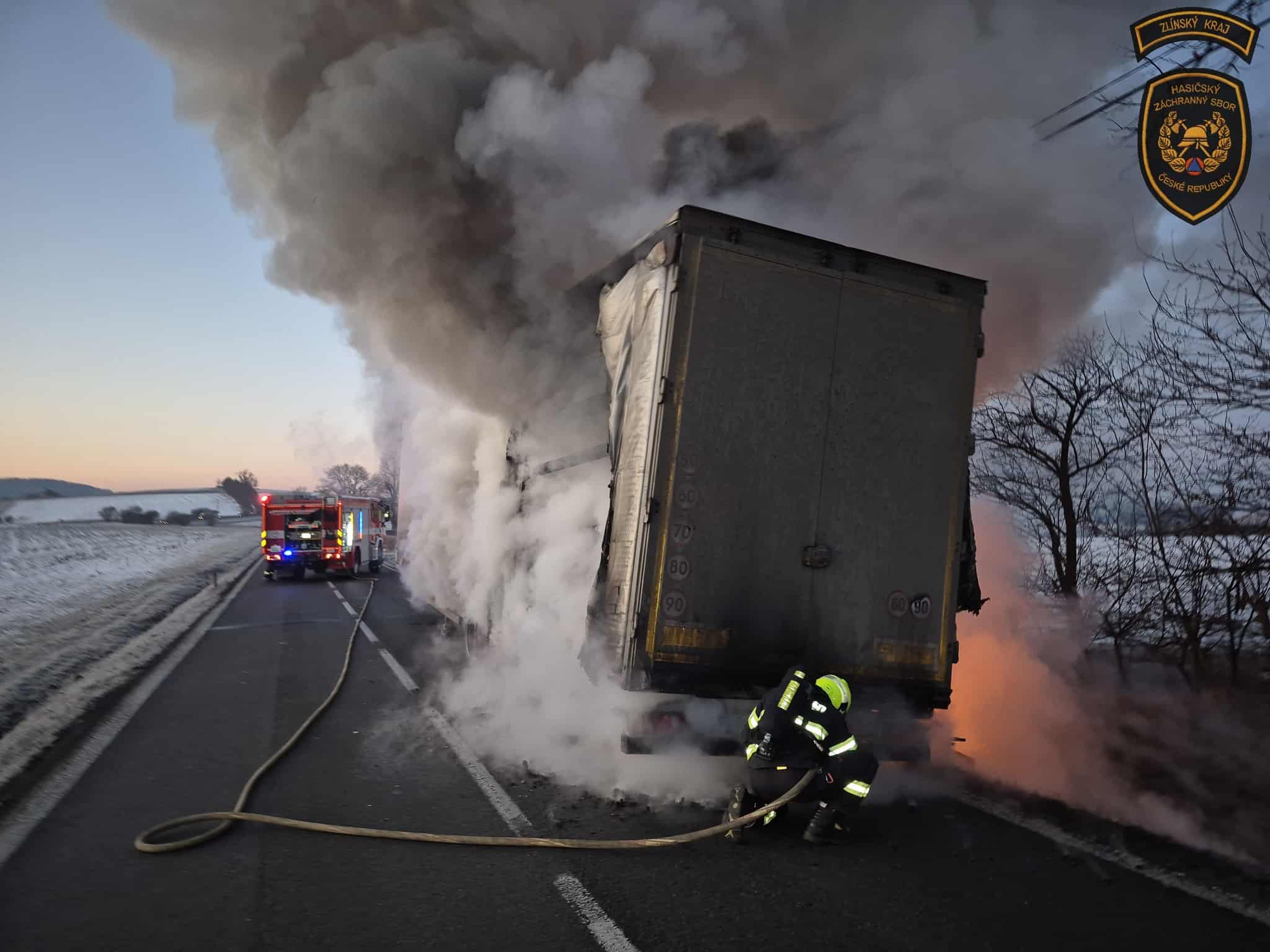 Dnes 19. ledna 2026 krátce po sedmé hodině ranní došlo na silnici u obce Krhová ve směru na Nový Jičín k požáru nákladního vozidla během jízdy. Na místo události byli okamžitě vysláni profesionální hasiči z Valašského Meziříčí a dobrovolná jednotka obce Zašová.