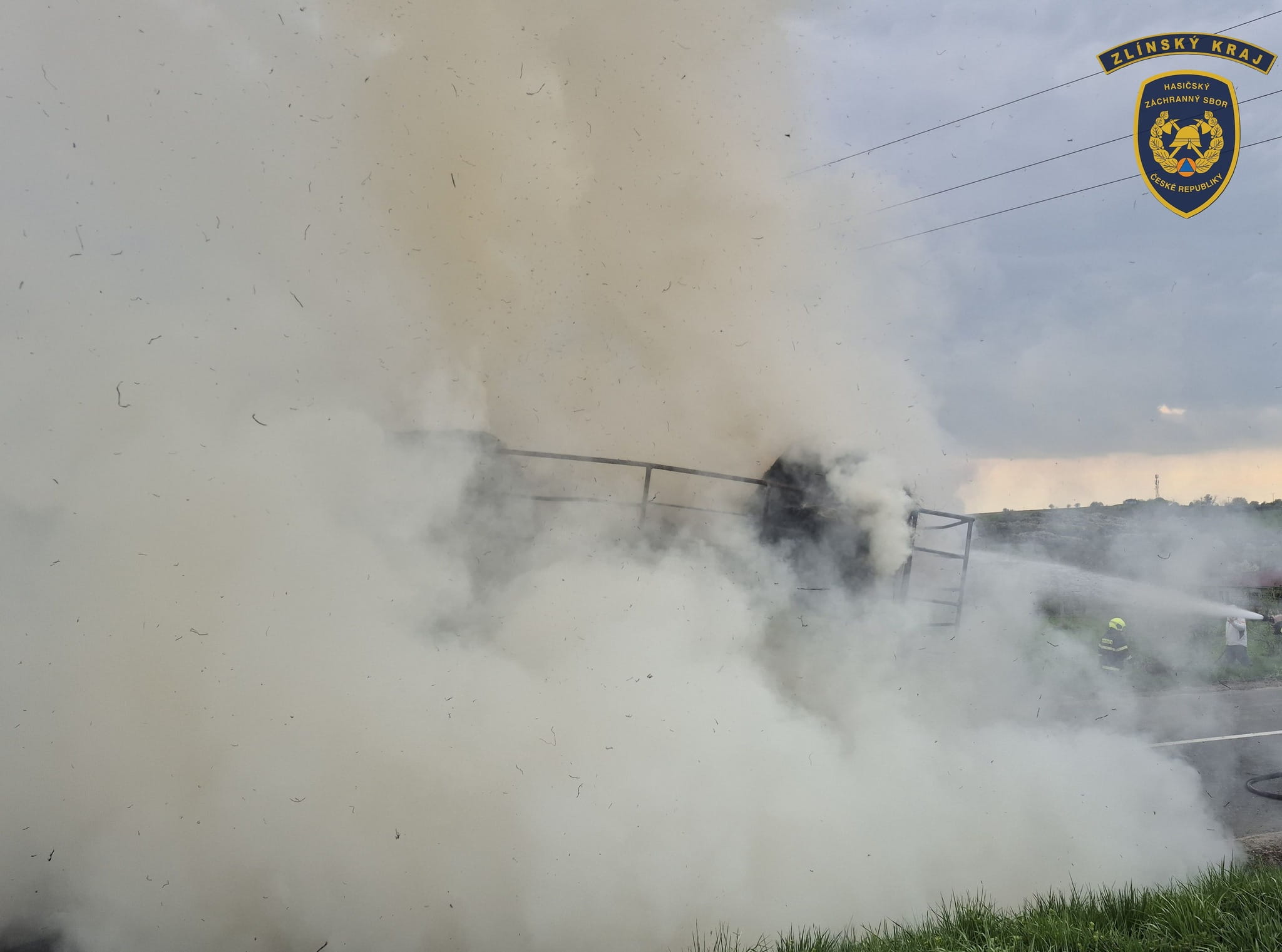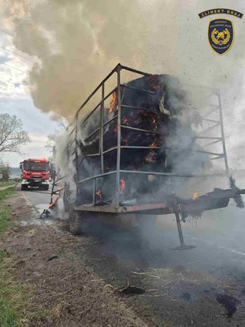 Požár zemědělského vleku naloženého senem si vyžádal rychlý zásah hasičů a dočasně ochromil dopravu v okolí. Plameny se šířily v hořlavém materiálu velmi rychle a hrozilo jejich další rozšíření.
