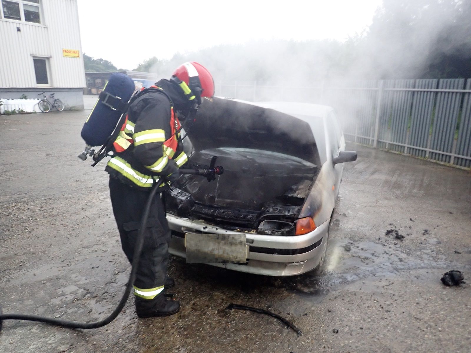 V době příjezdu se stále kouřilo z motorového prostoru. Požár byl totiž omezen na intenzitě použitím tří hasicích přístrojů. Hasiči v dýchacích přístrojích požár uhasili vysokotlakým proudem vody. Při požáru nedošlo k zranění osob.