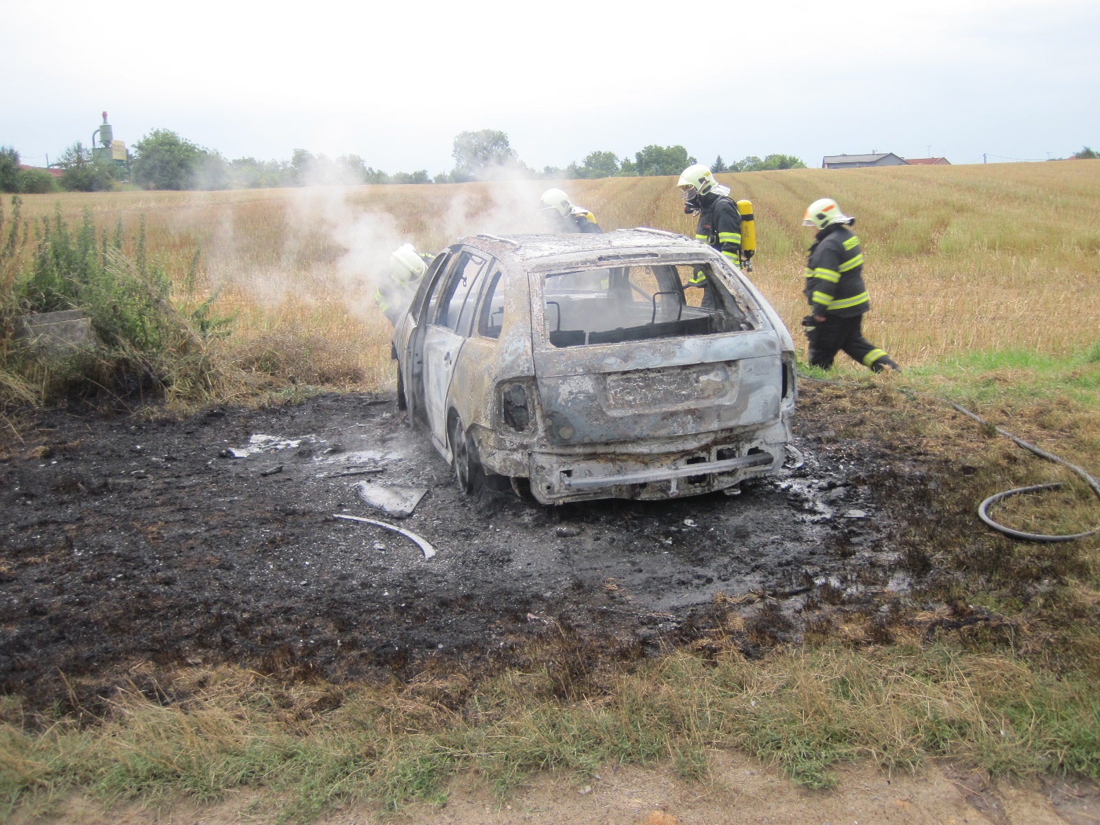 Oznamovatel hasičům sdělil v 6:14 hodin, že u obce Topolná je celé auto v plamenech. Požární poplach byl vyhlášen jednotce profesionálních hasičů z požární stanice Uherské Hradiště a Otrokovice a jednotkám sboru dobrovolných hasičů obcí Bílovice a Napajedla.