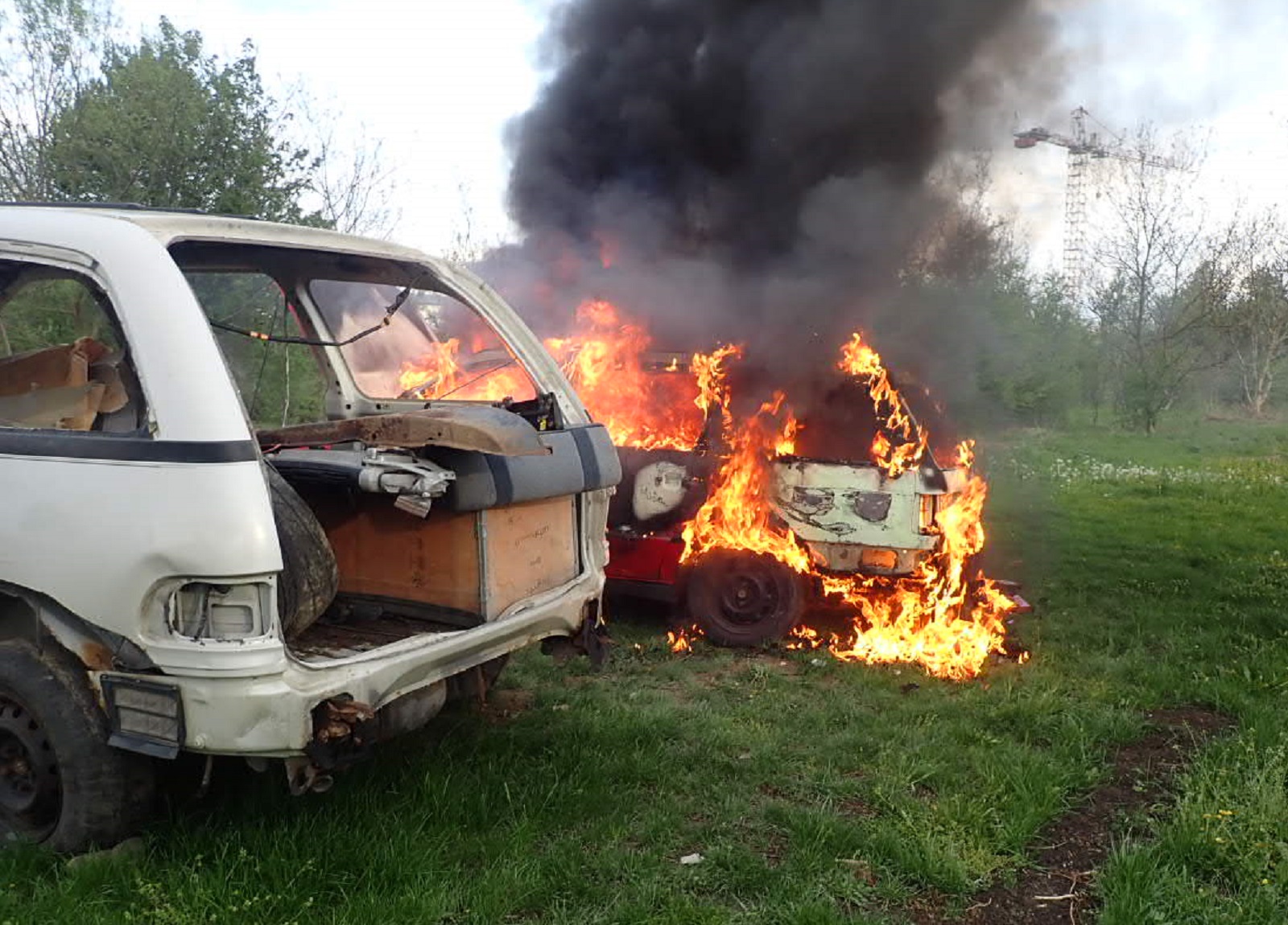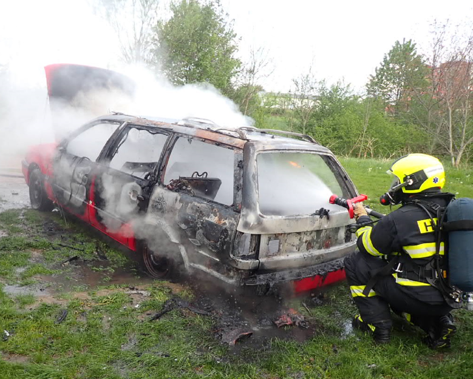 (8. 5. 2022) K požáru osobního automobilu nedaleko autovrakoviště v Uherském Brodě vyjely večer dvě jednotky hasičů.