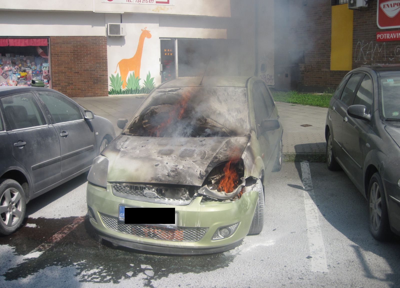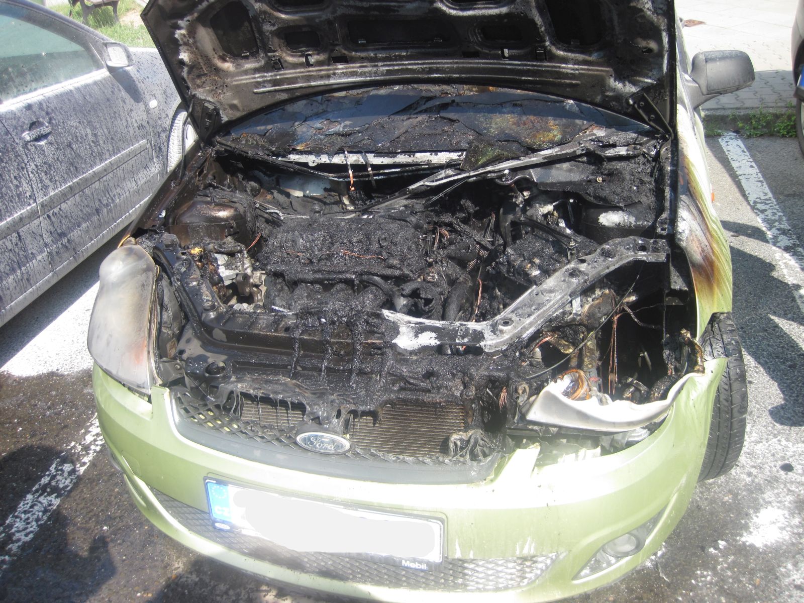 Požár osobního vozidla ohrožoval další zaparkovaná auta