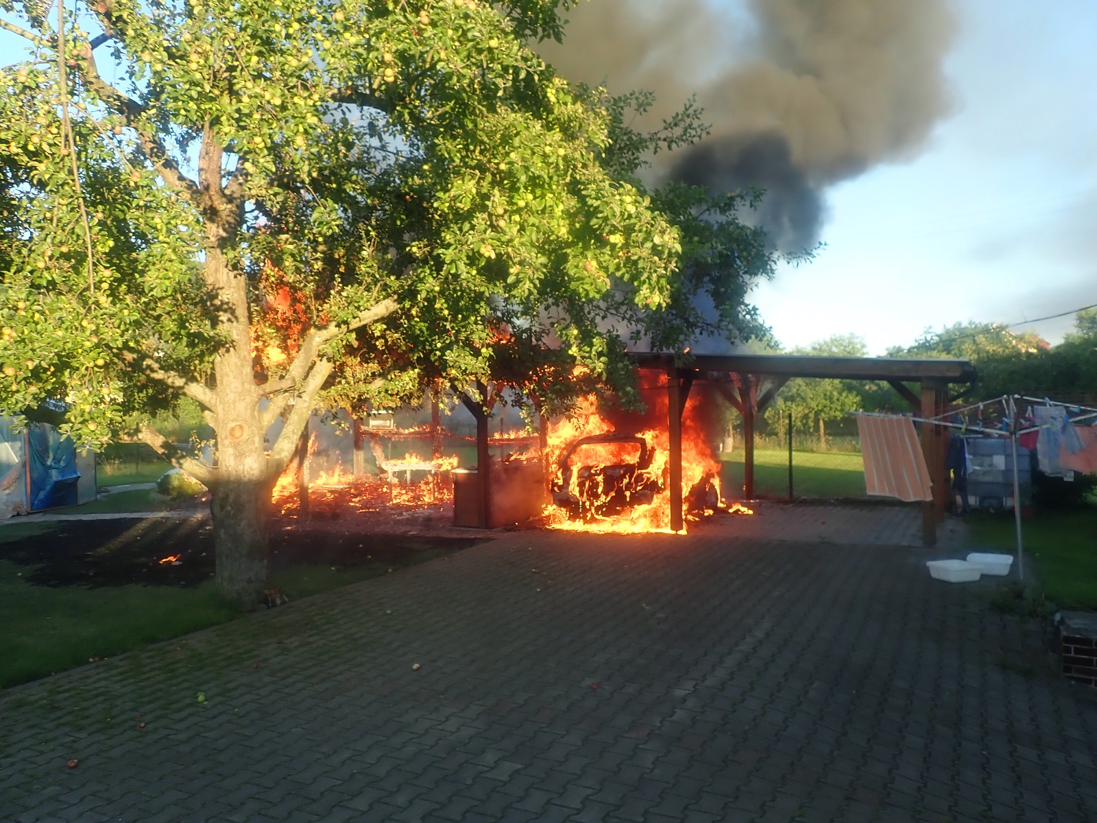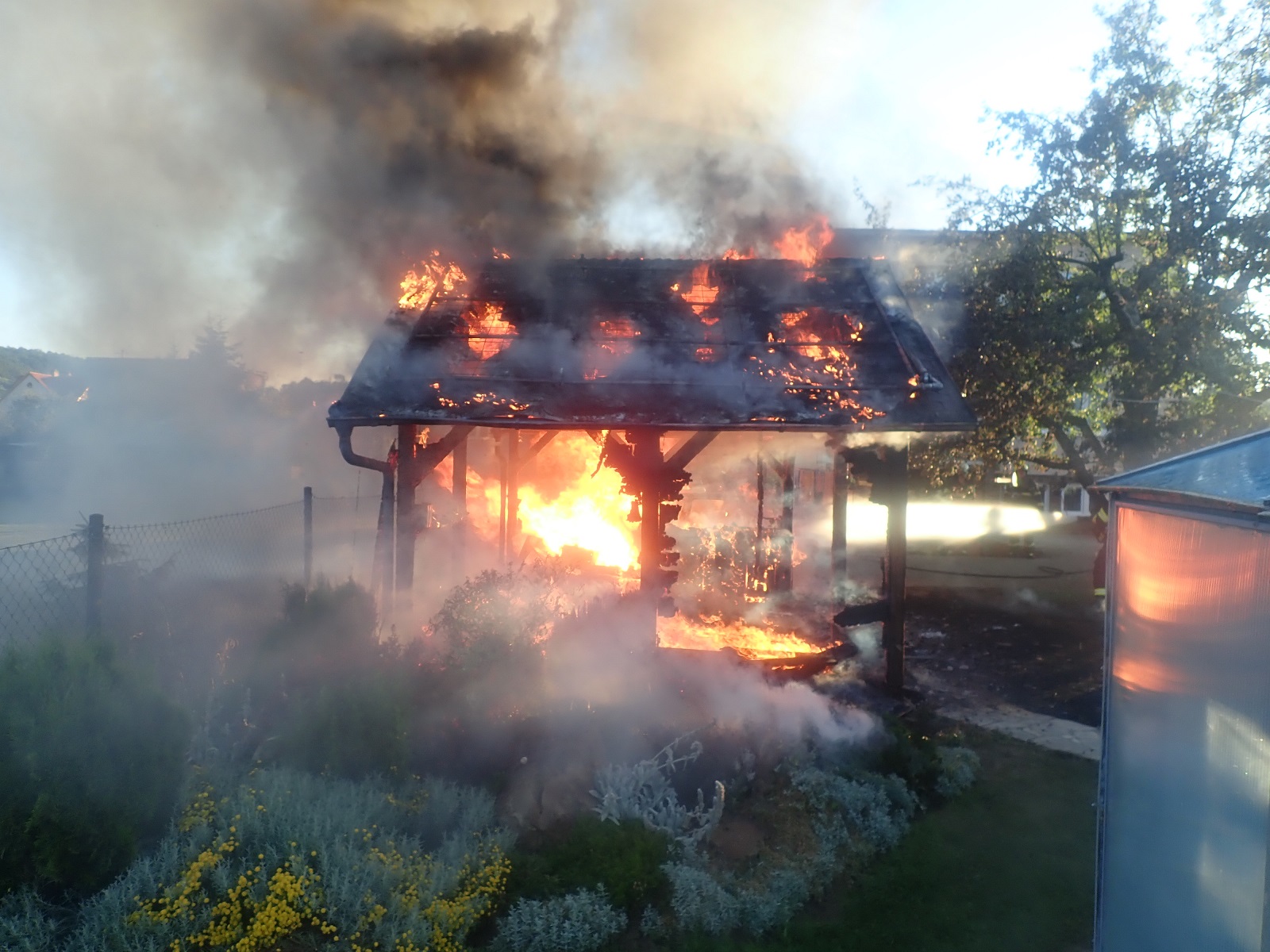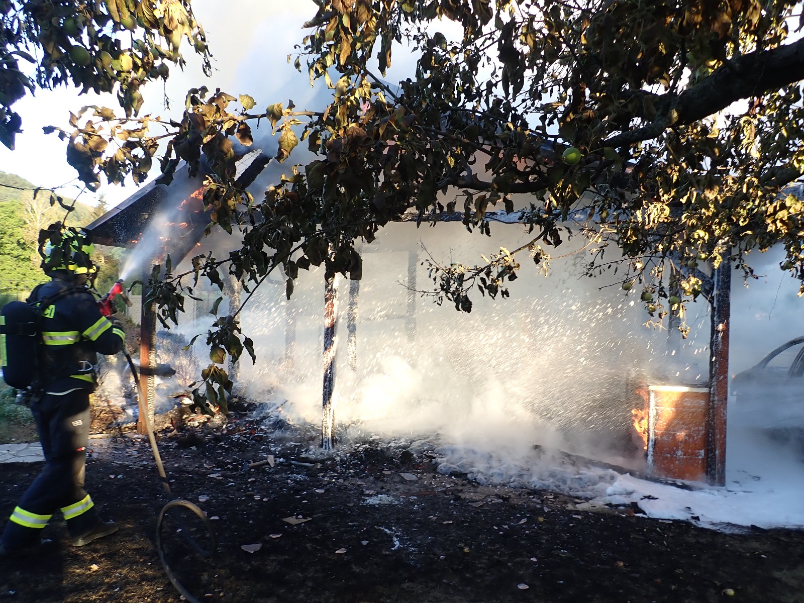 (6. 7. 2020) Dnes ráno došlo k požáru pergoly na zahradě rodinného domu v Lužkovicích v okresu Zlín.