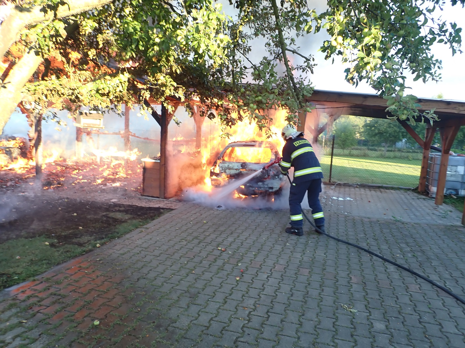 Požár byl ohlášen hasičům v 5:28 hodin. Oznamovatel hasičům sdělil, že v pergole je zaparkovaný osobní automobil. Požární poplach byl vyhlášen profesionálním hasičům z centrální požární stanice Zlín a dobrovolným hasičům města Vizovice.