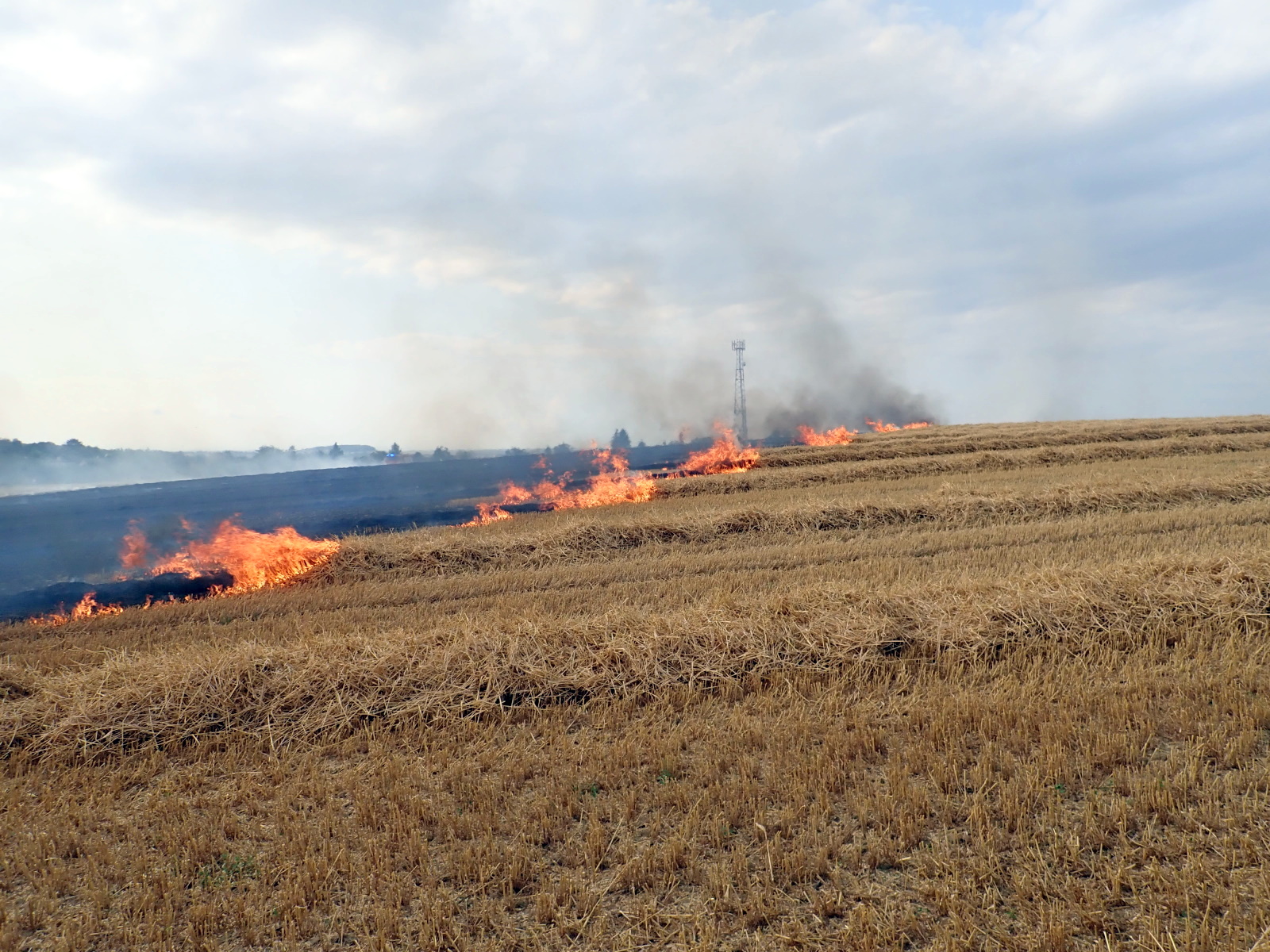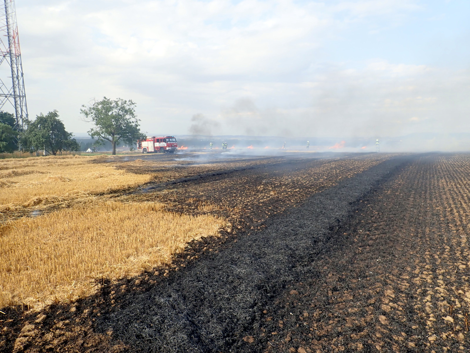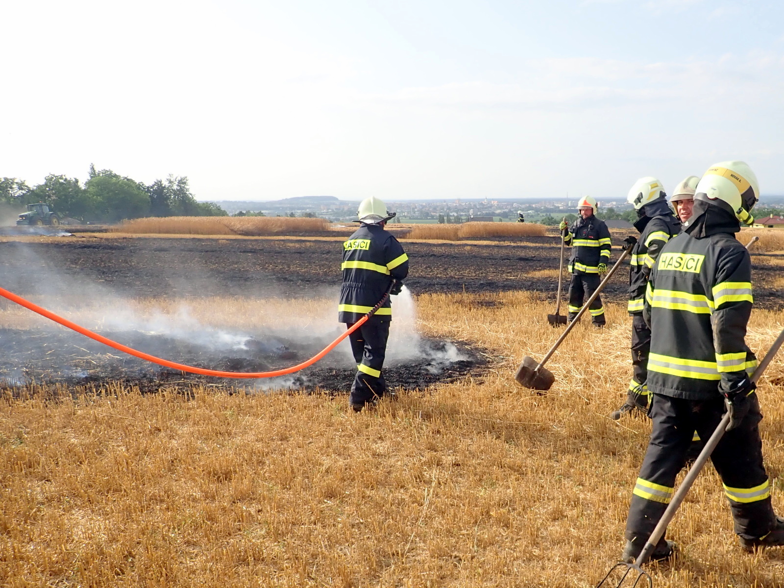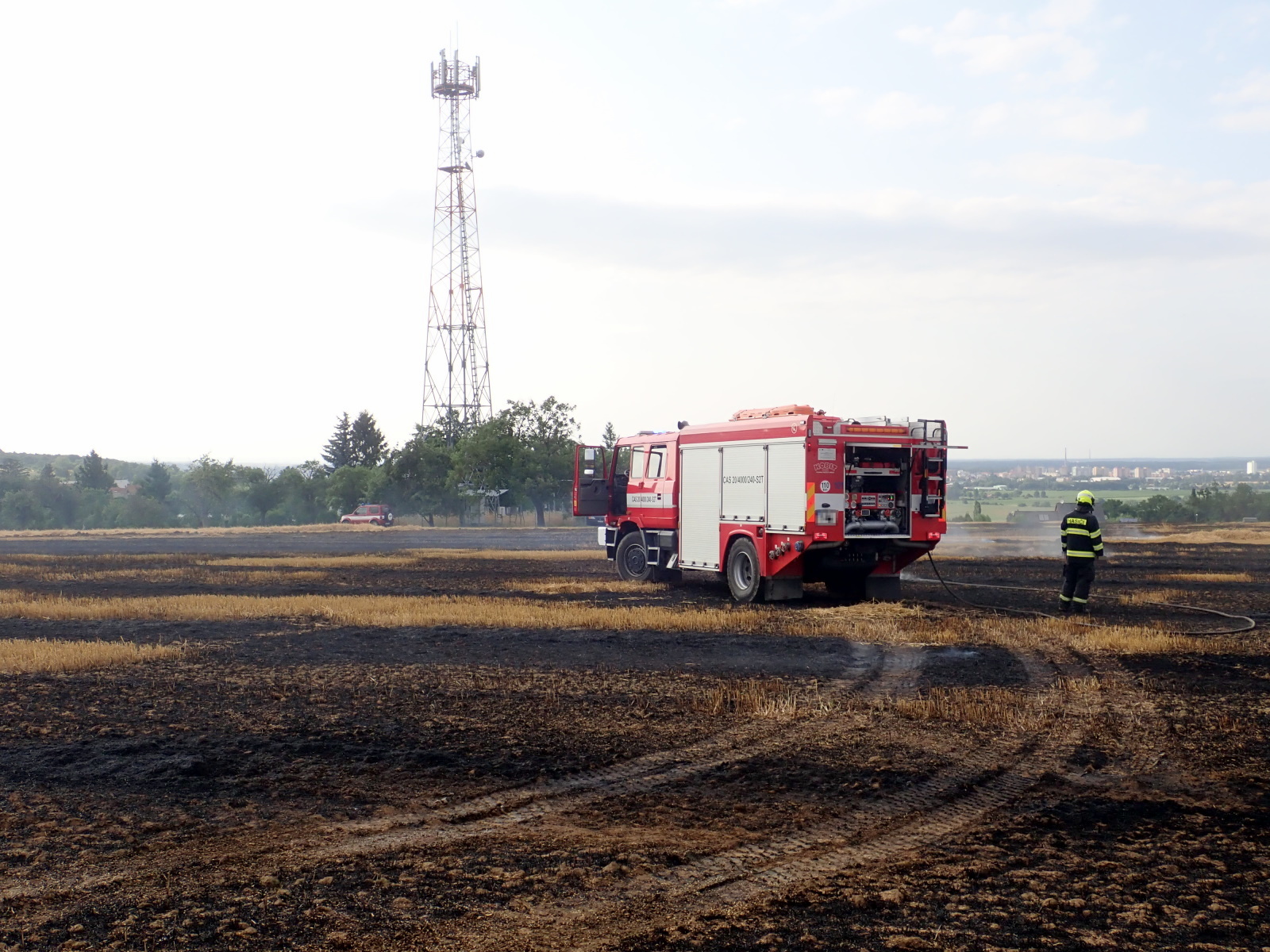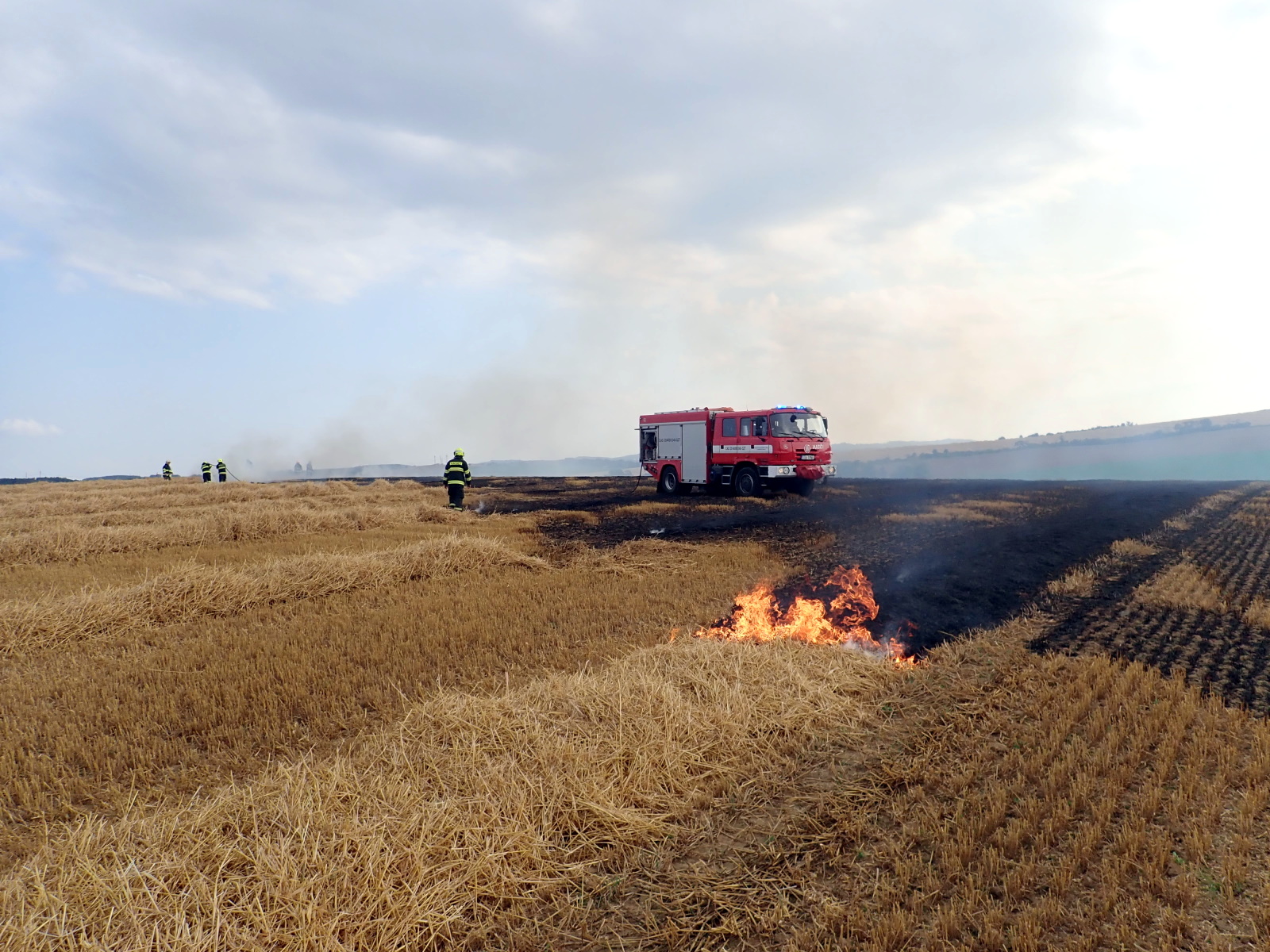(19.7.2021) V 17:08 hodin přijali hasiči informaci o požáru sklízeného pole v Kroměříži-Těšnovicích. K události postupně vyjelo celkem osm cisteren profesionálních i dobrovolných hasičů.