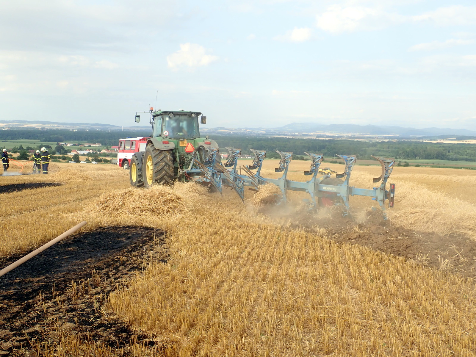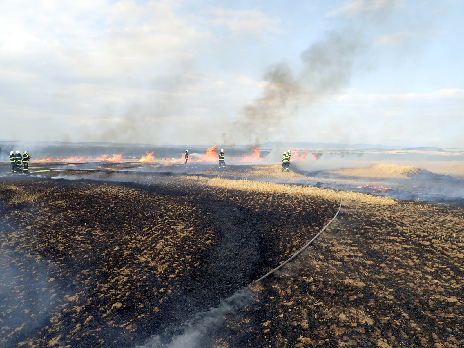 Prioritně se hasiči zaměřili na ochranu ještě neposečených částí pole a postupně prováděli lokalizaci zasažené slámy. Po příjezdu traktoru bylo požářiště oboráno a dohašeno. V 18:10 hodin ohlásil velitel zásahu celkovou likvidaci požáru.