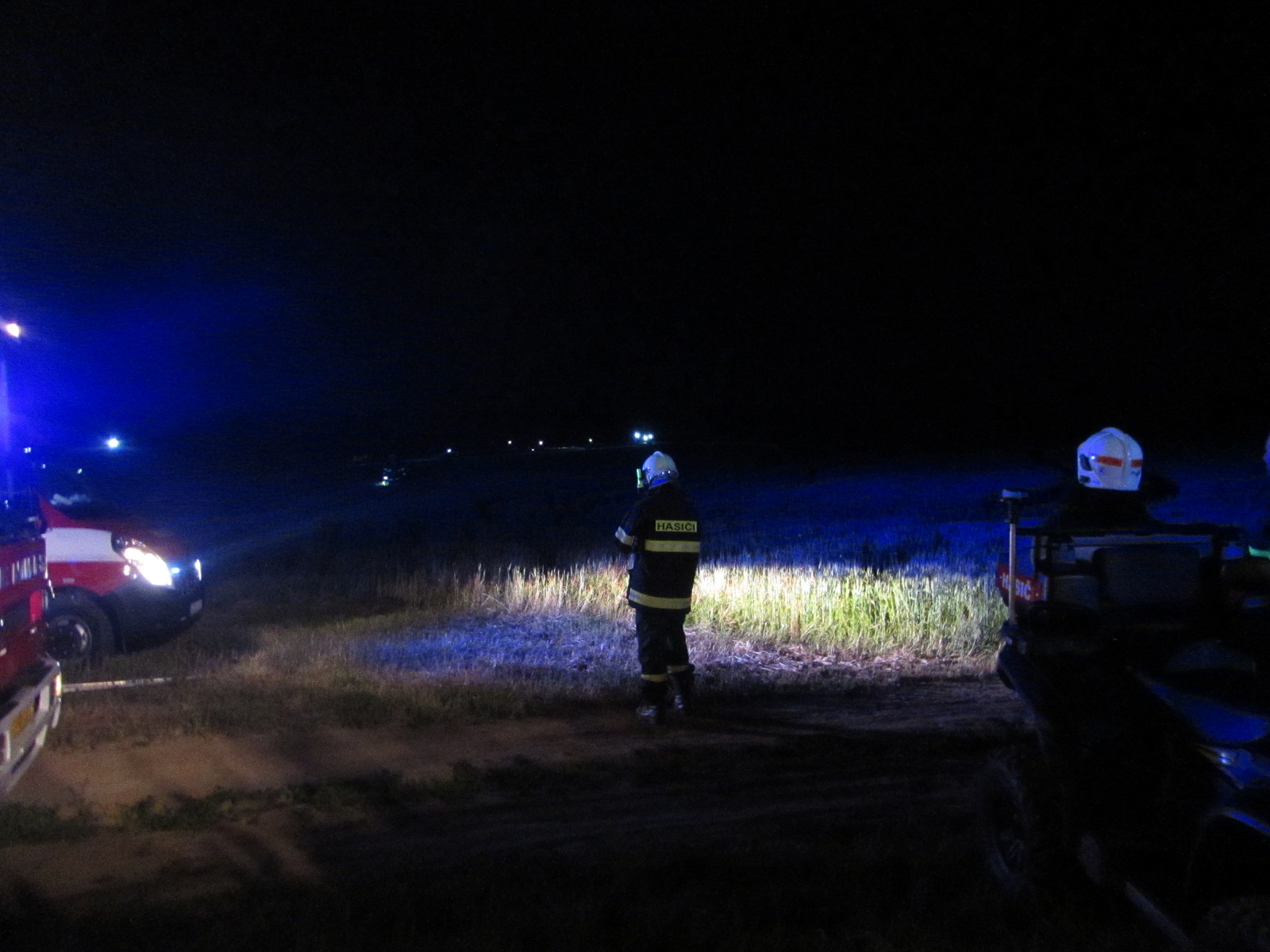 Po příjezdu na místo požáru bylo zjištěno, že se jedná o přístřešek s uskladněným senem. Hasiči v dýchacích přístrojích požár uhasili jedním vysokotlakým proudem vody a dvěma útočnými proudy C. Během hašení velitel zásahu obdržel informaci, že nedaleko požáru volá neznámá osoba o pomoc. Vyžádal si proto posily. Na místo byly vyslány jednotky dobrovolných hasičů obcí Mistřice a Topolná. Hasiči utvořili rojnici a kolem 22:00 hodin se jim podařilo najít hledanou osobu, kterou předali Policii České republiky.