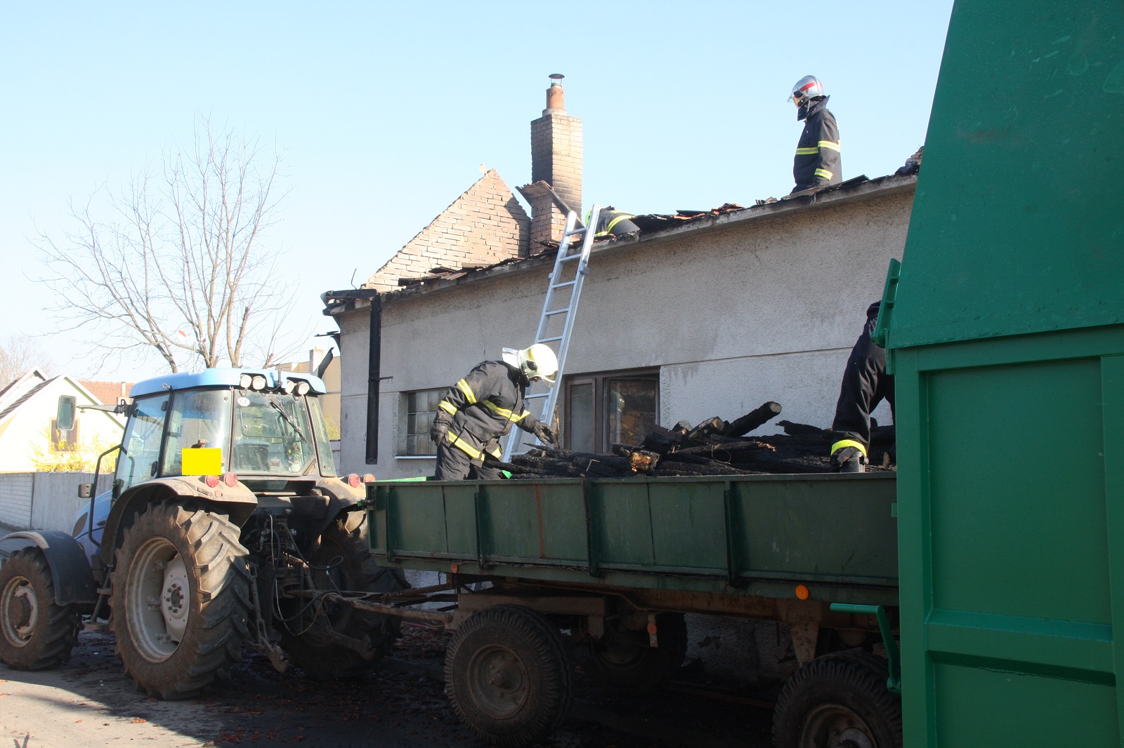 Po uhašení plamenů zkontrolovali s termokamerou teplotu stavebních konstrukcí hořícího domu, a také teplotu stavebních konstrukcí mezi hořícím domem a sousedním rodinným domem. Následně začali rozebírat konstrukci střechy. S motorovou pilou přeřezávali ohořelé trámy krovu. Zbytky střechy nakládali do přistaveného kontejneru a na vlečku traktoru.