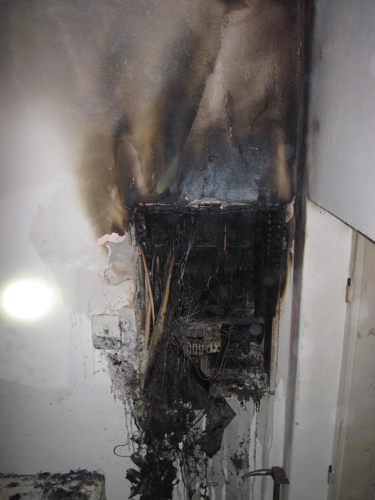 Na místo požáru se dostavil vyšetřovatel hasičů. Ten se dozvěděl, že požár zjistila majitelka domu, která sledovala televizi. Najednou se televize sama vypnula. Šla zjistit, co se děje a zpozorovala, že hoří rozváděč. Vzbudila proto bratra a syna. Syn následně ohlásil požár hasičům.