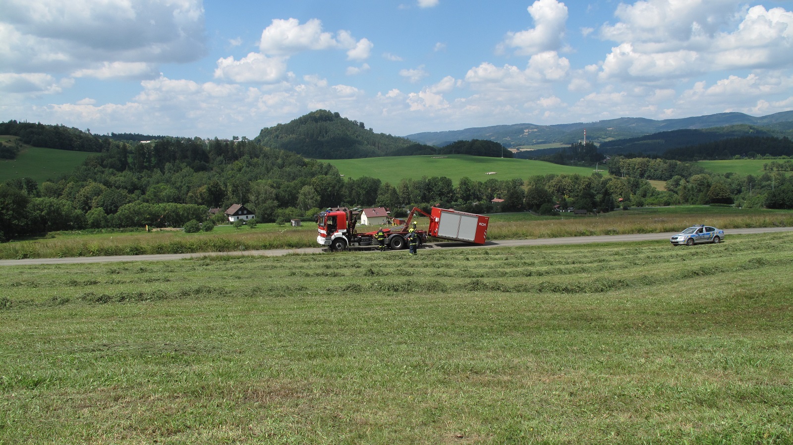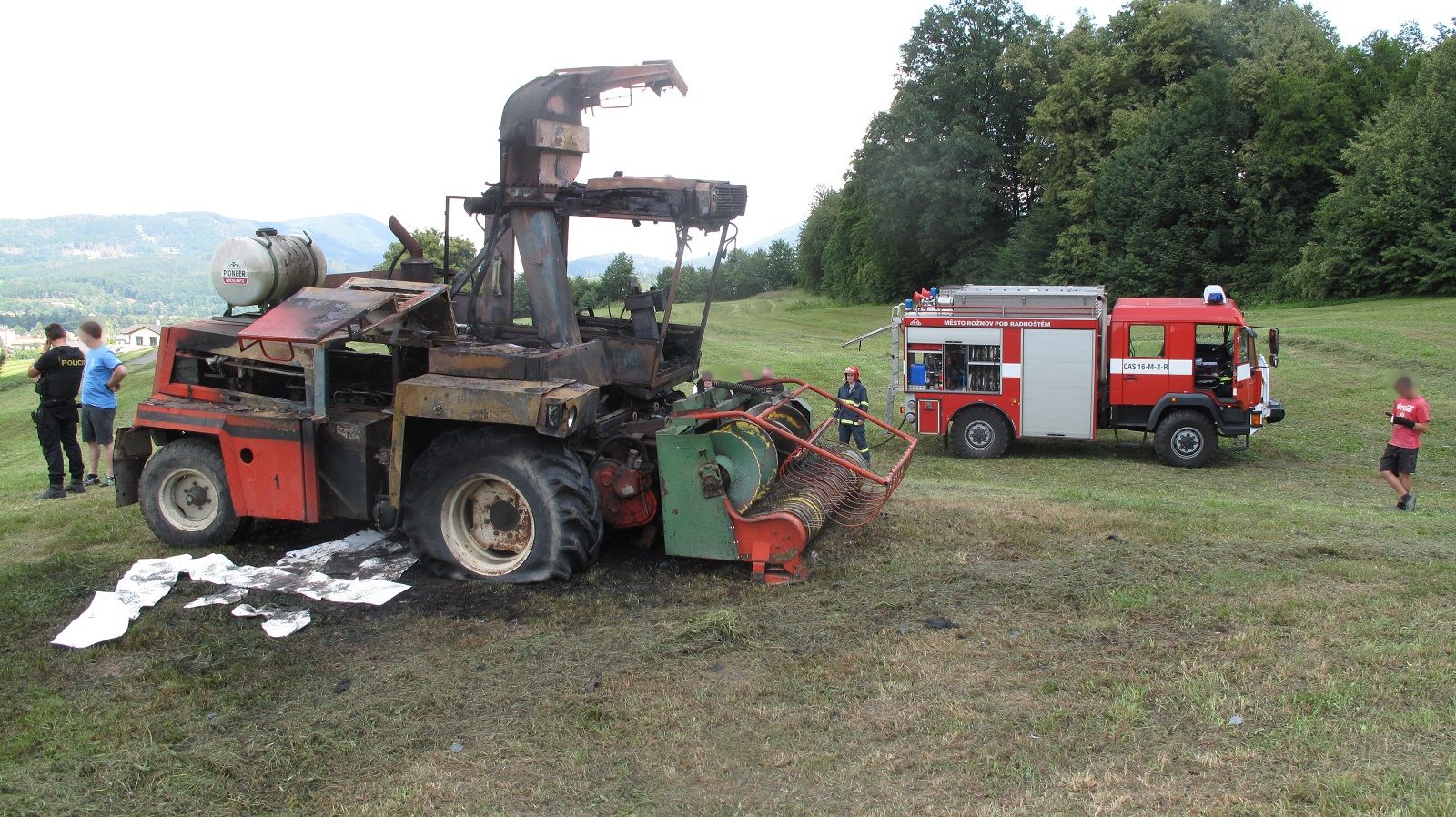 Když byla řezačka uhašena, začala z ní vytékat nafta. Velitel zásahu si proto vyžádal chemický kontejner