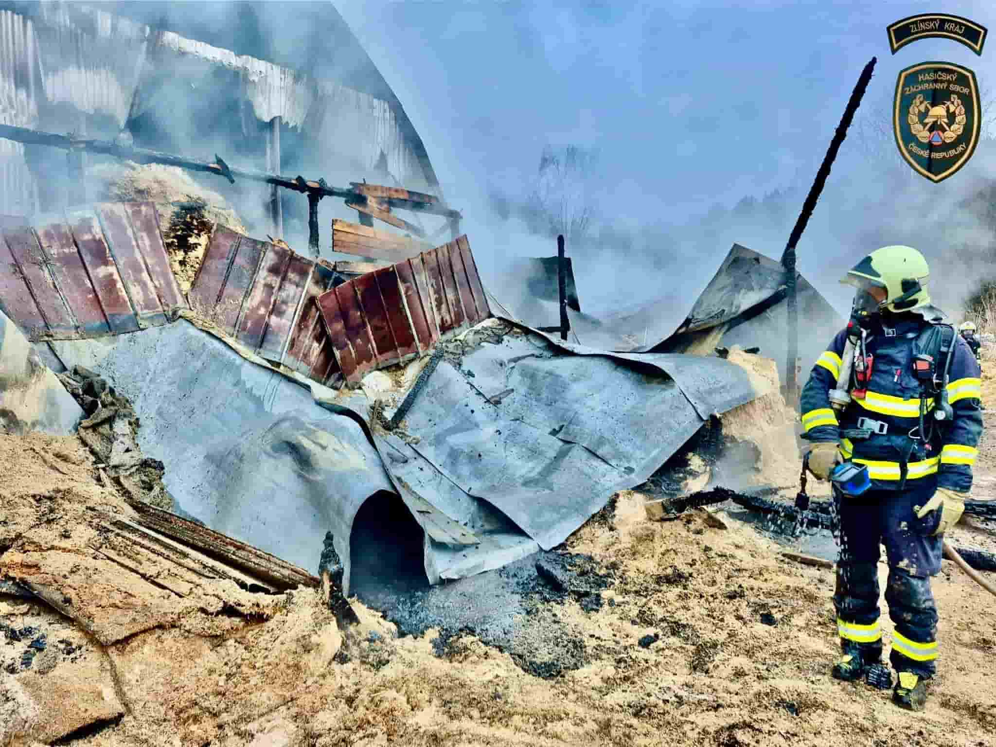 Hasiči zasahovali u požáru skladu pilin, kde hrozilo šíření ohně na okolní objekty. Nasazeny byly čtyři hasební proudy a postupné rozebírání materiálu. Příčinu zjišťují vyšetřovatelé.