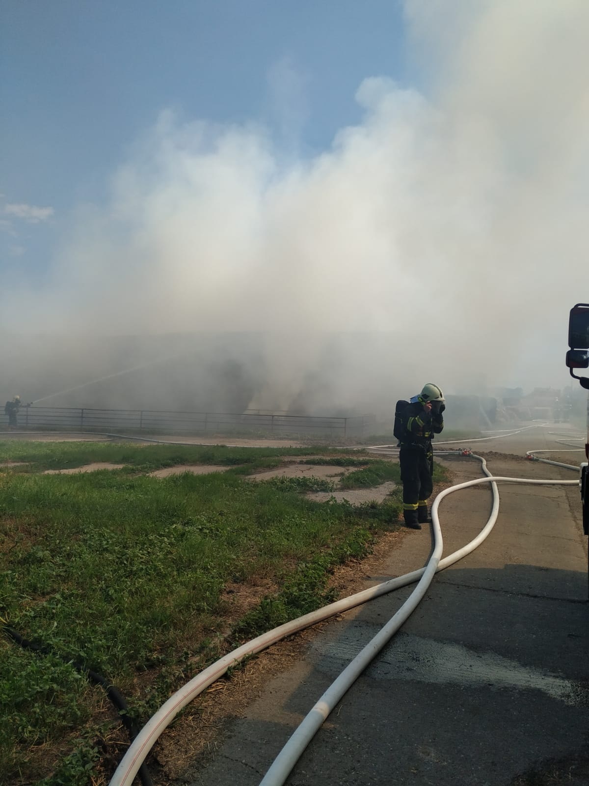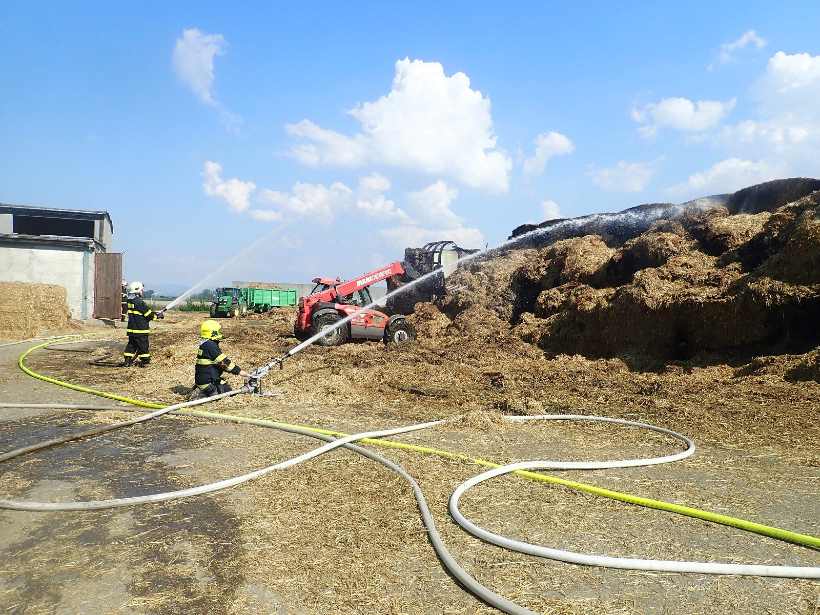 Stoh asi s 1000 balíky slámy hořel v blízkosti kravína. Evakuace ustájeného skotu nebyla potřeba. Hasiči v dýchacích přístrojích požár hasili s jedním vysokotlakým proudem vody a několika útočnými proudy C. Stoh byl rozebírán s pomocí zemědělské techniky a odebraná sláma byla prolévána vodou. K požáru vyjel velící důstojník směny a krajský řídící důstojník.