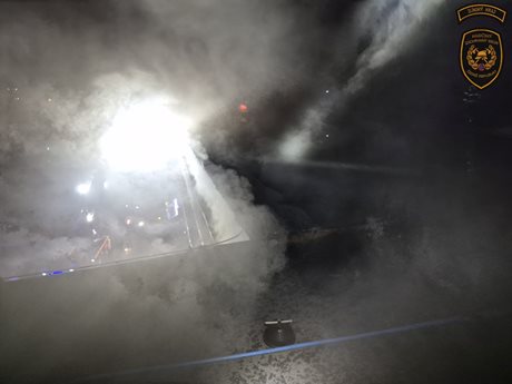 Velitel zásahu využil i dron, který snímal požářiště z výšky. Živý přenos z kamery umožnil přesně vyhodnocovat ohniska a řídit zásah na nebezpečných částech střechy.