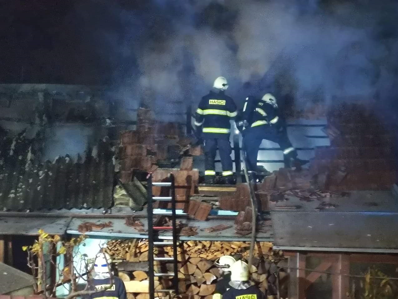 (1. 11. 2021) U požáru střechy stolárny v Buchlovicích zasahovalo dnes večer pět jednotek hasičů.