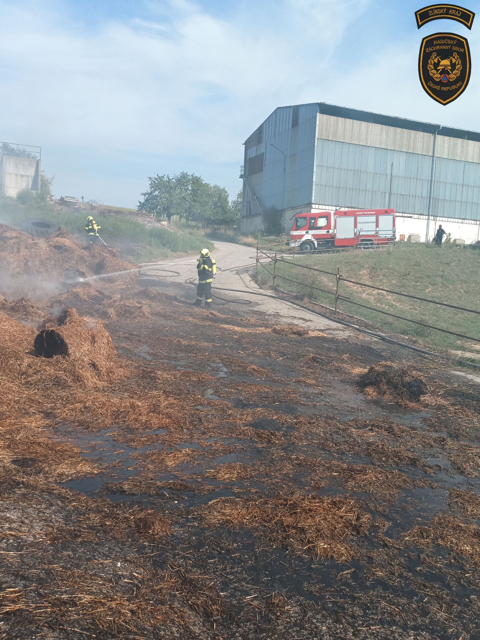 Hasiči se nejprve snažili zamezit dalšímu šíření požáru a uchránit okolní objekty, což se podařilo. Poté společně se zaměstnanci za pomocí techniky vyváželi slámu na volné prostranství, kde ji prolévali.