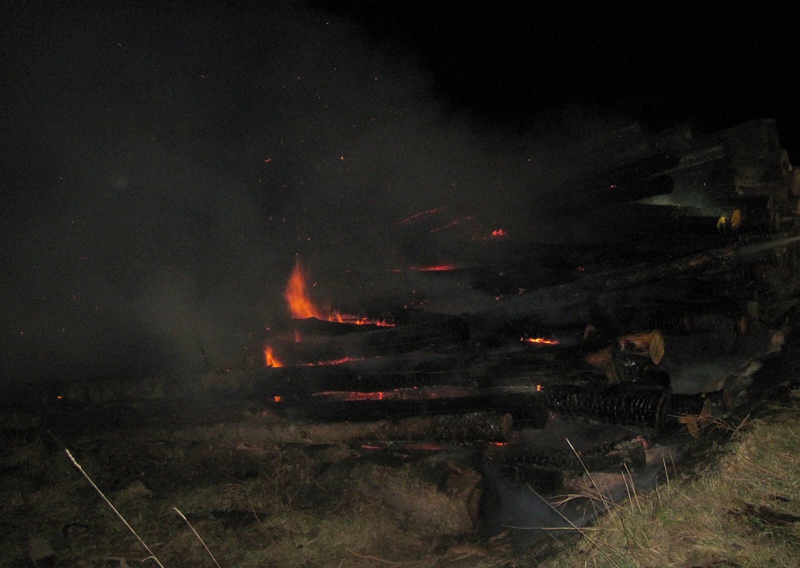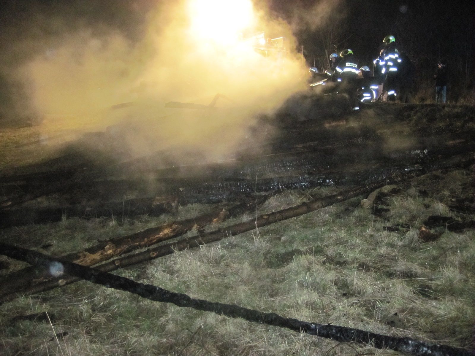 Hasební práce byly ukončeny 30 minut před půlnocí. Na místě zůstali na dohlídku místní dobrovolní hasiči.