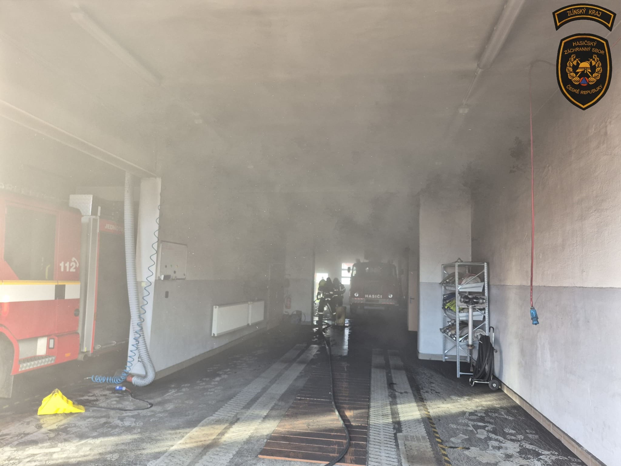 Požár v hasičské zbrojnici: Při zásahu se zranil jeden z dobrovolných hasičů