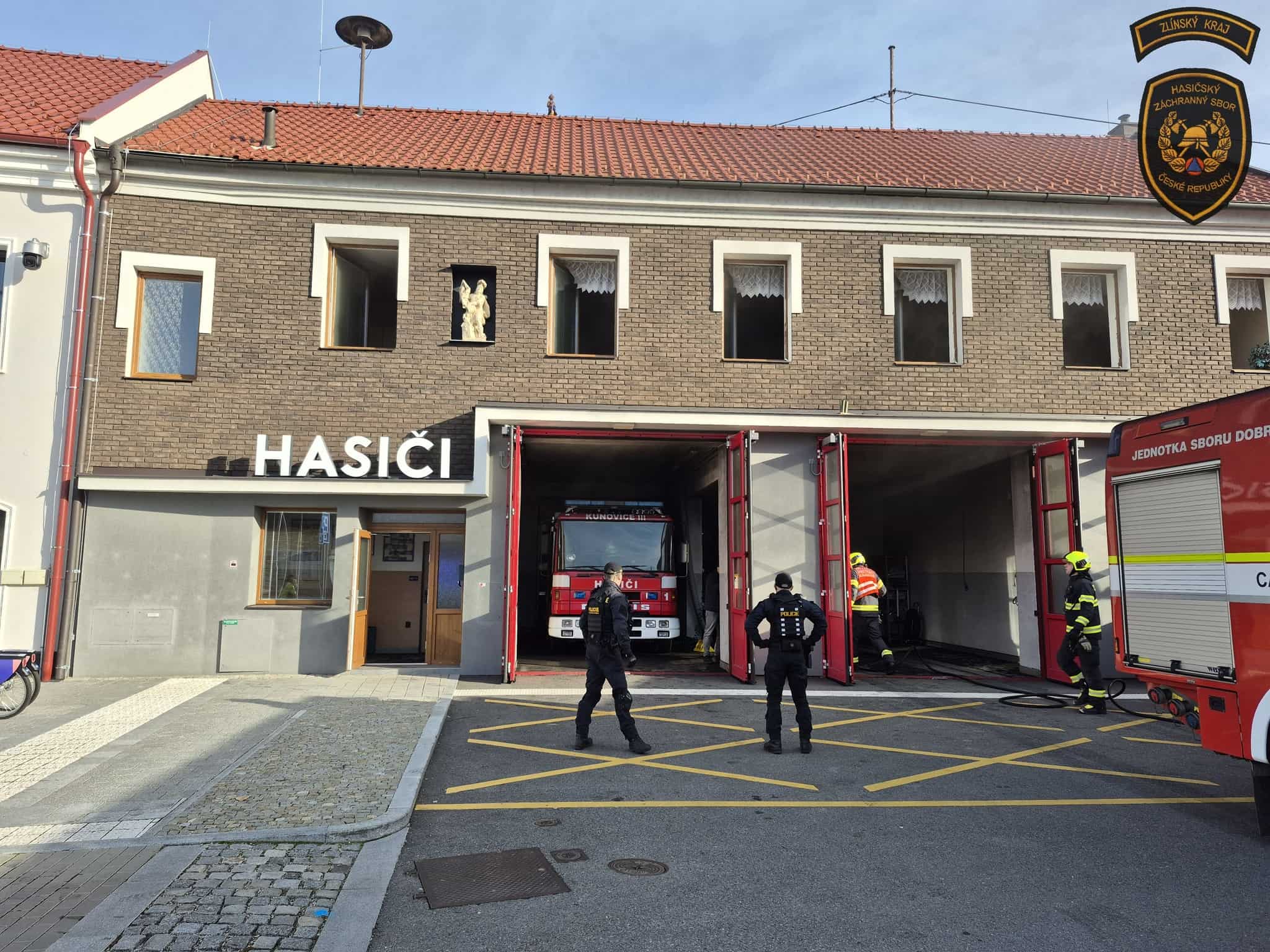 Krátký zásah s následky: Požár hasičské zbrojnice v Kunovicích