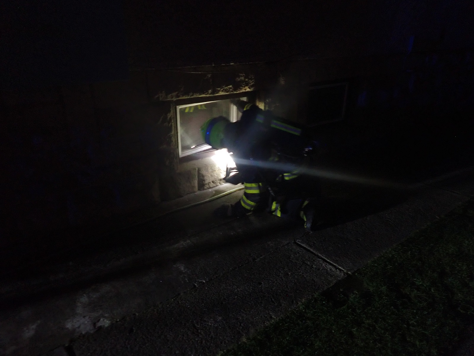 Ještě před naším příjezdem dům opustily tři dospělé osoby a jedno dítě. Průzkumem v dýchacích přístrojích bylo zjištěno, že k požáru došlo v modelářské dílně. Požár byl uhašen jedním proudem vody C. Dům byl odvětrán přetlakovým ventilátorem.