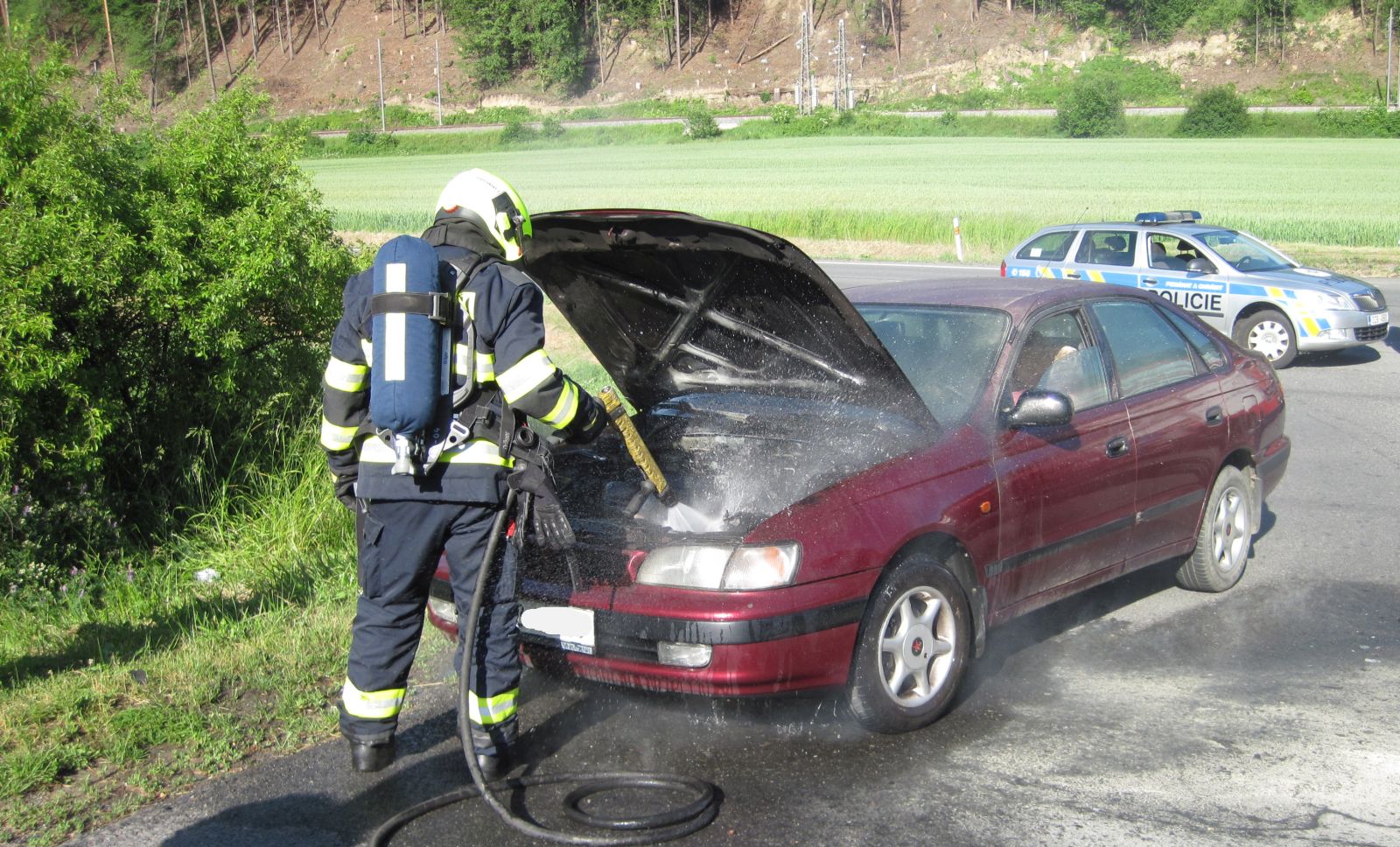 Dvě jednotky hasičů likvidovaly v neděli 11.6. 2017 požár osobního vozidla u obce Jarcová na Vsetínsku.