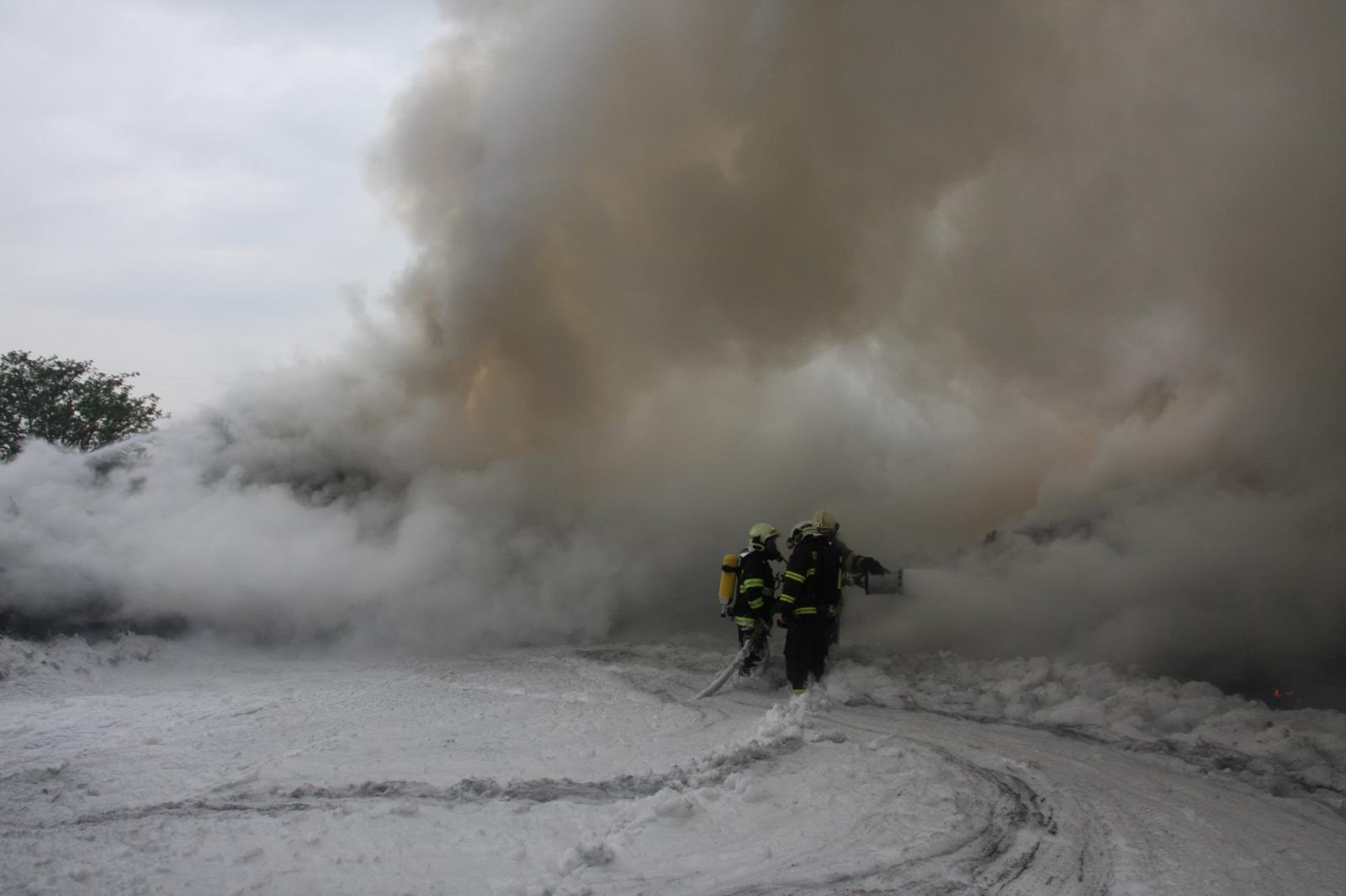 Nasazeny byly okamžitě dva proudy s hasební pěnou a těžká technika, kterou byly hromady materiálu rozebírány. Kvůli velké spotřebě dýchacích přístrojů byl na místo povolán také protiplynový kontejner ze stanice Uherské Hradiště.