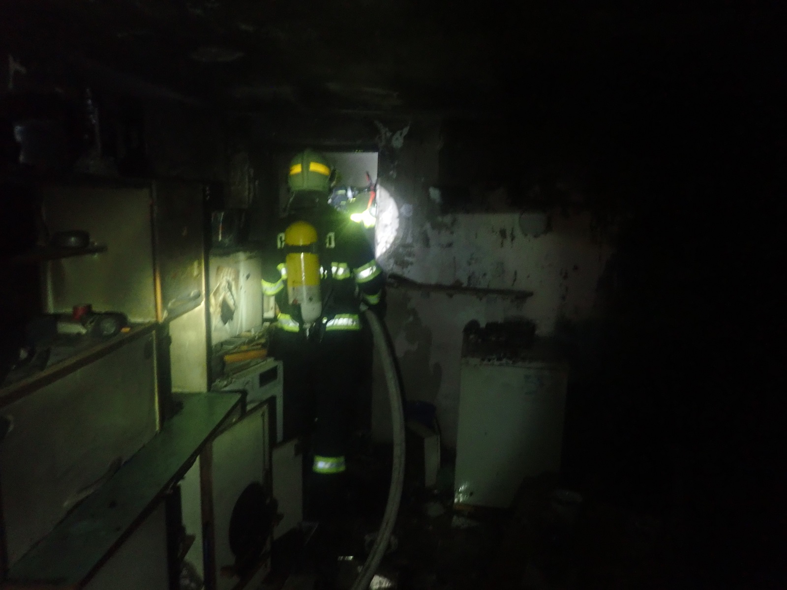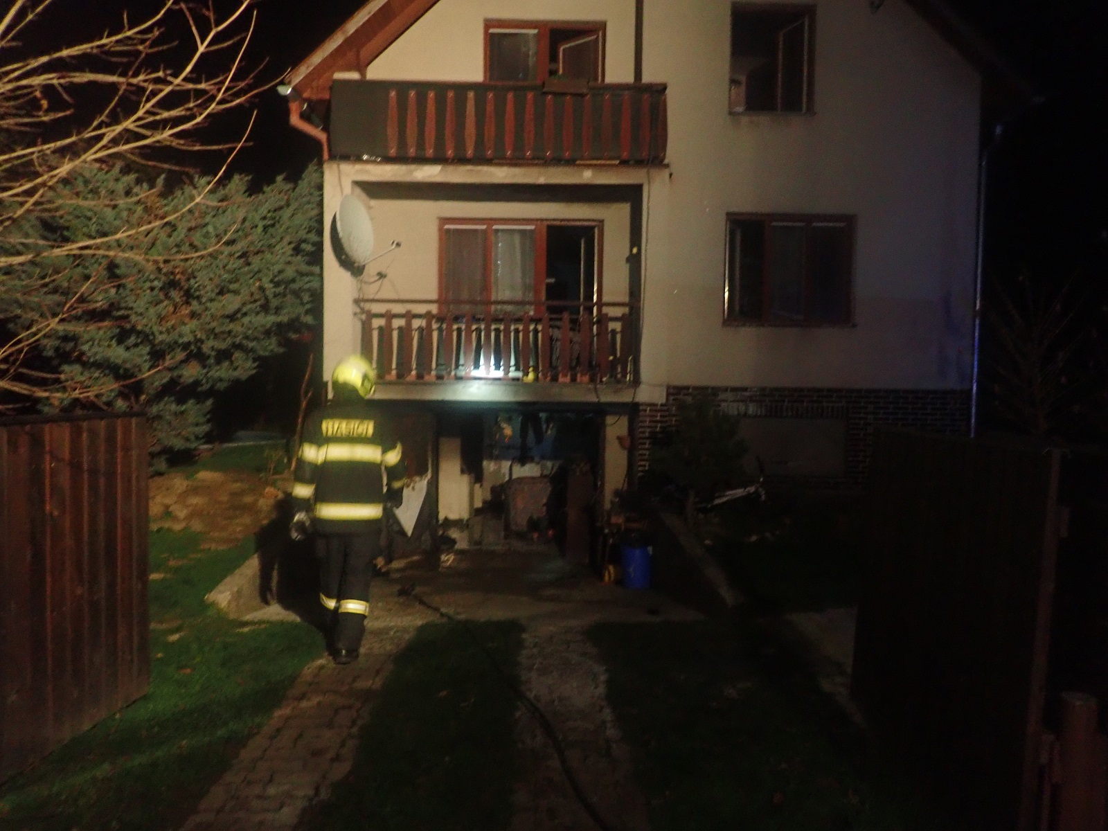 Na místě požáru byla jako první místní jednotka dobrovolných hasičů. V dýchacích přístrojích provedli průzkum a zjistili, že hoří v prostoru garáže. Později se zjistilo, že šlo o prostory navazující na garáž. Požár byl uhašen dvěma proudy vody.