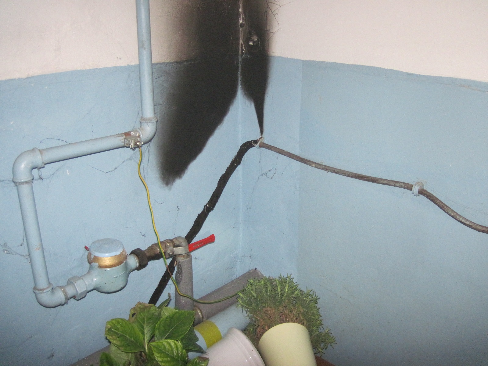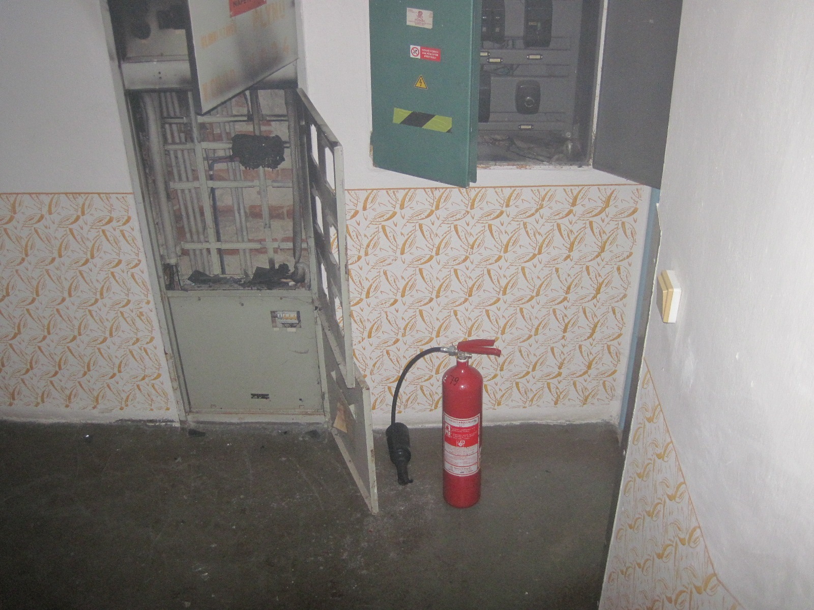 Hořící kabel i zásuvku v místnosti mandlovny a také elektroměr v prostoru schodiště jsme uhasili jedním hasicím přístrojem.