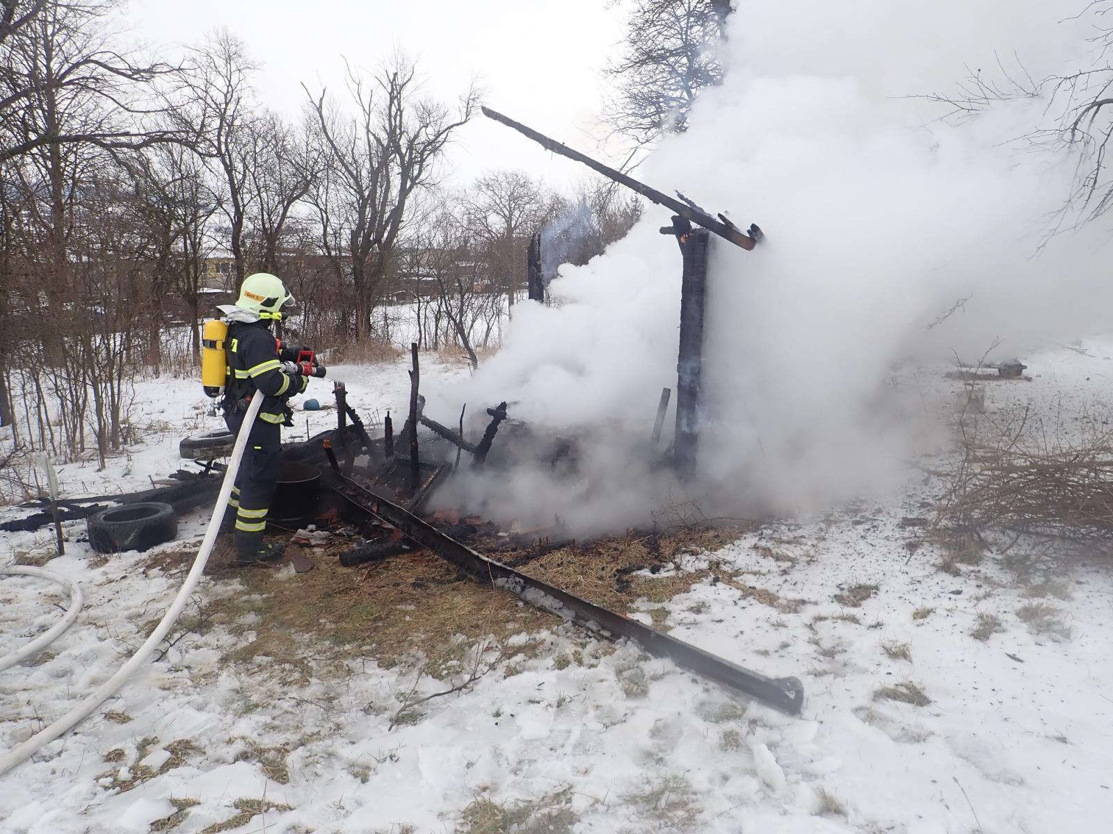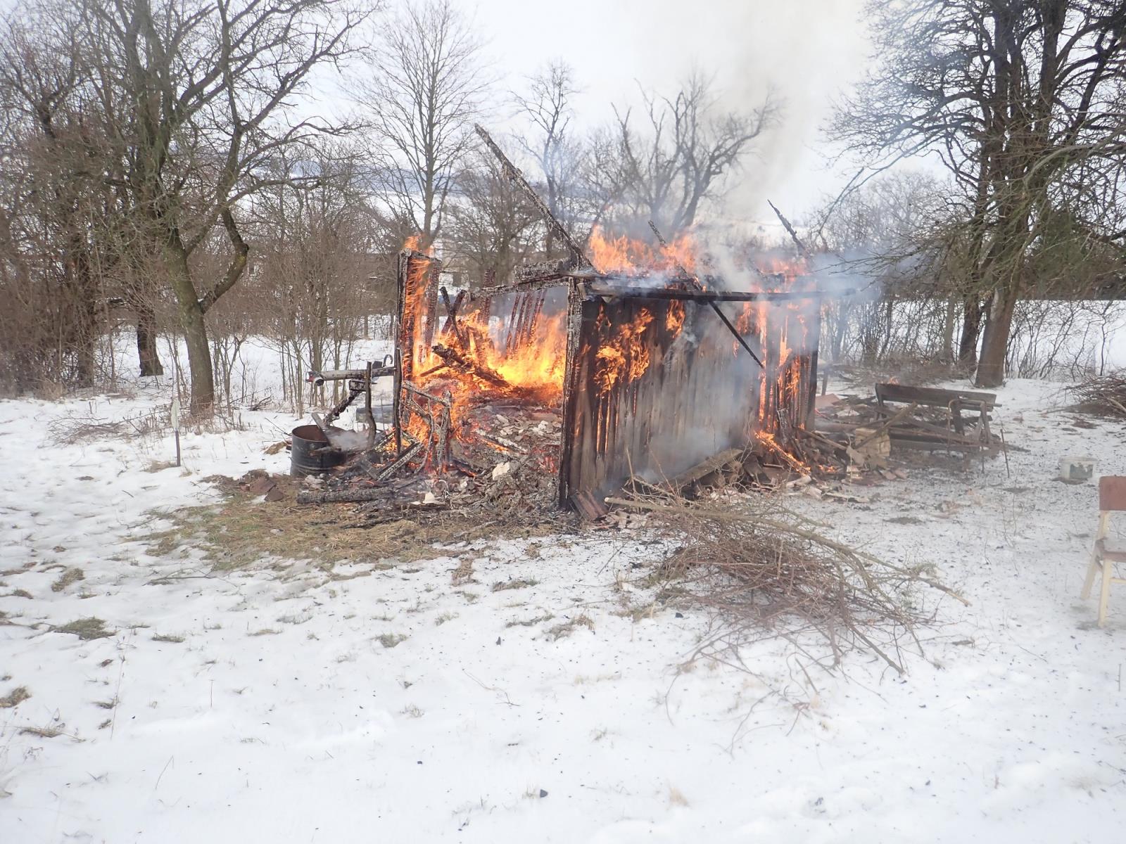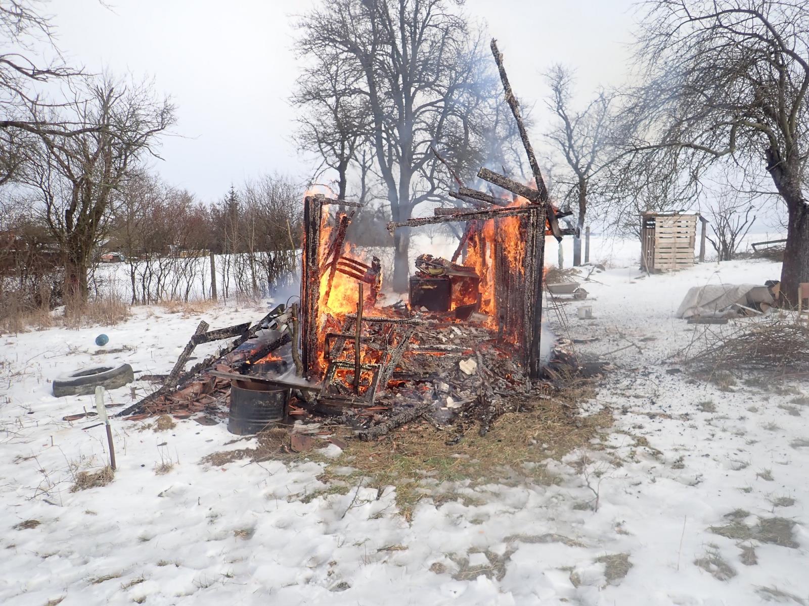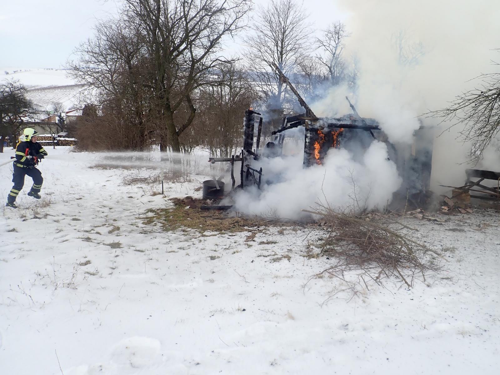 (13. 2. 2021) Před polednem došlo k požáru zahradní chatky u obce Zdounky v okresu Kroměříž.