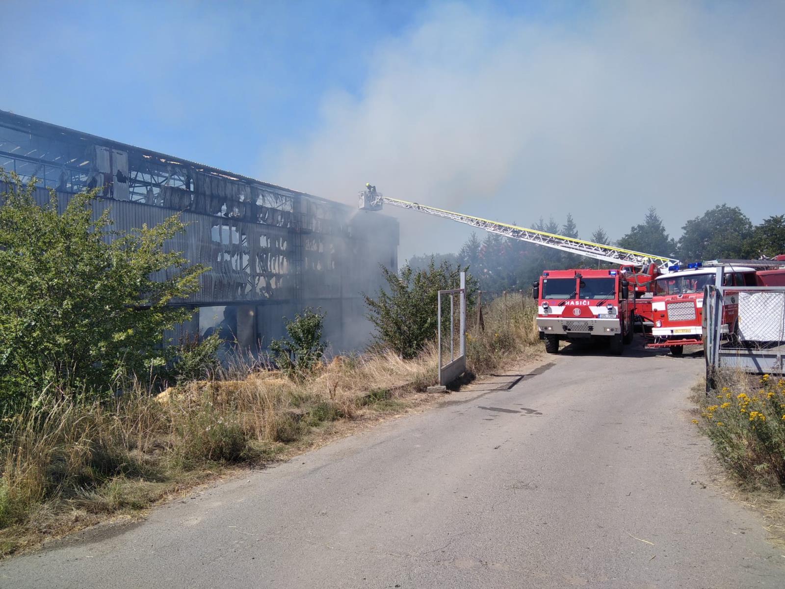 Dnes pokračuje i likvidace dalšího včerejšího požáru, a to v Oldřichovicích na Zlínsku, kde hasiči od pondělního odpoledne bojují s rozsáhlým požárem sena a slámy ve velkoobjemové budově.